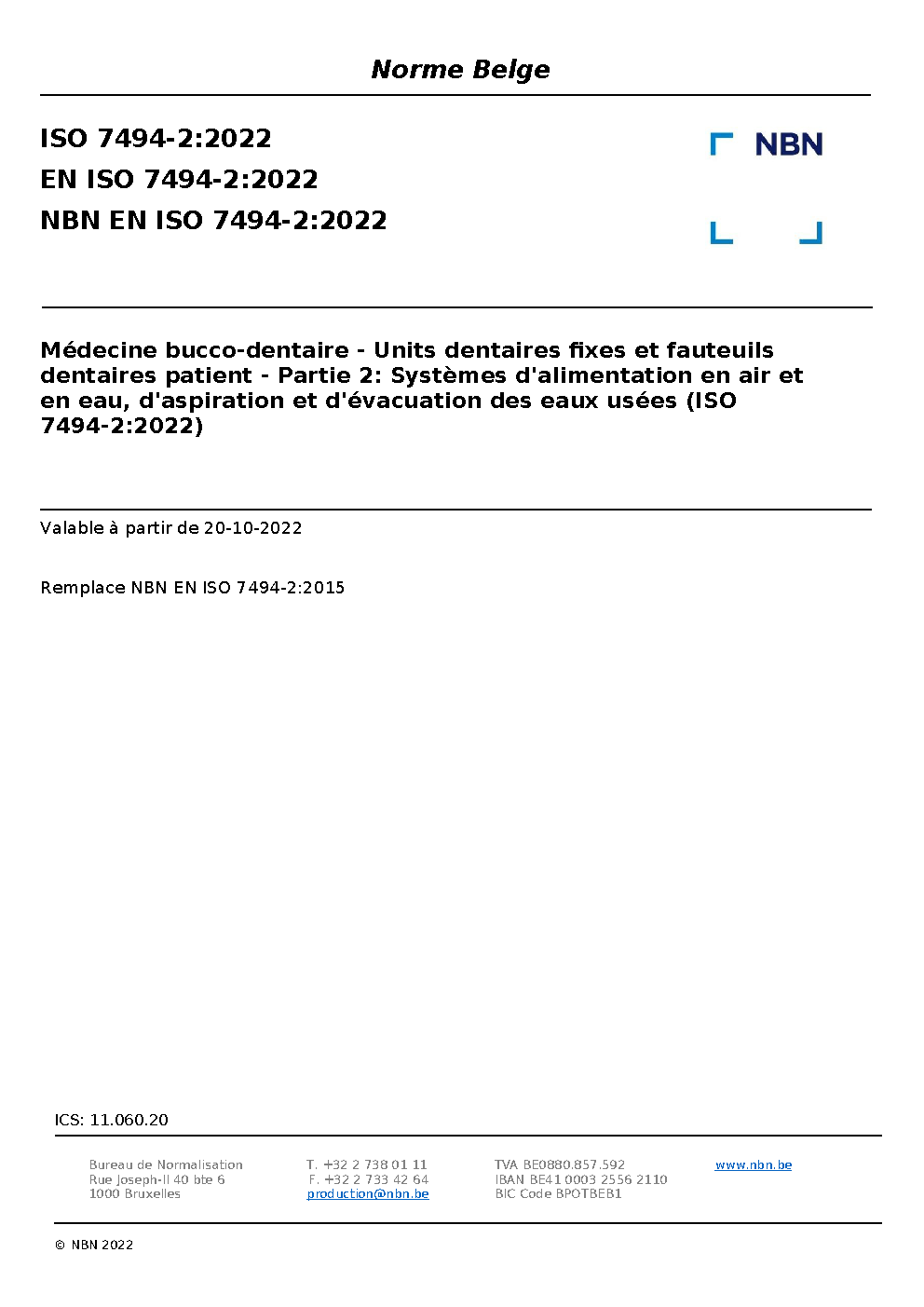 Dentistry - Stationary dental units and dental patient chairs - Part 2: Air, water, suction and wastewater systems (ISO 7494-2:2022)