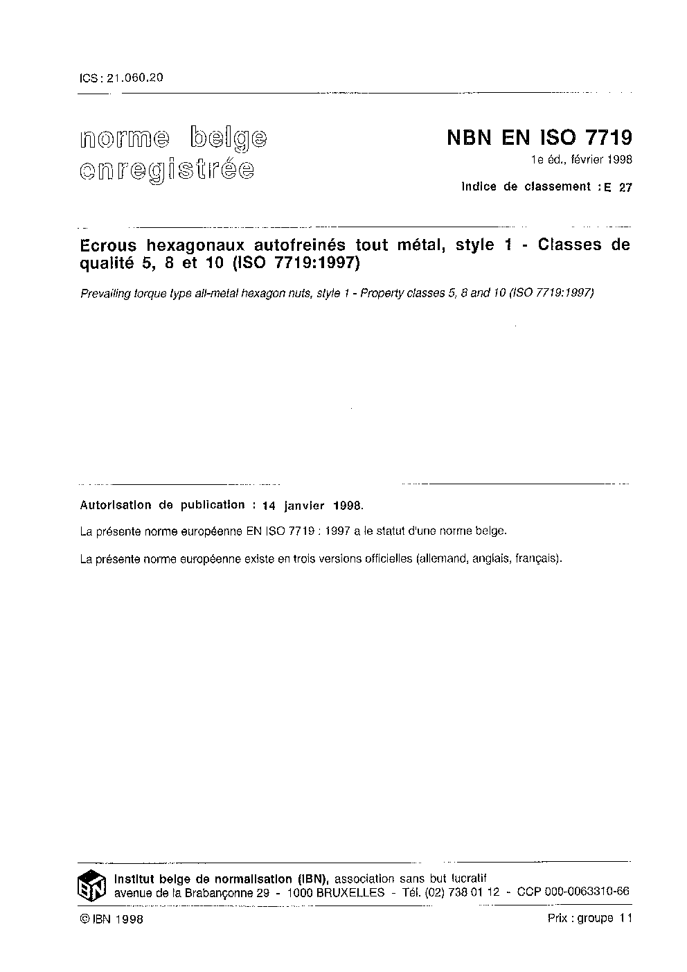 | Publisher | Bureau de Normalisation Belge (NBN) |