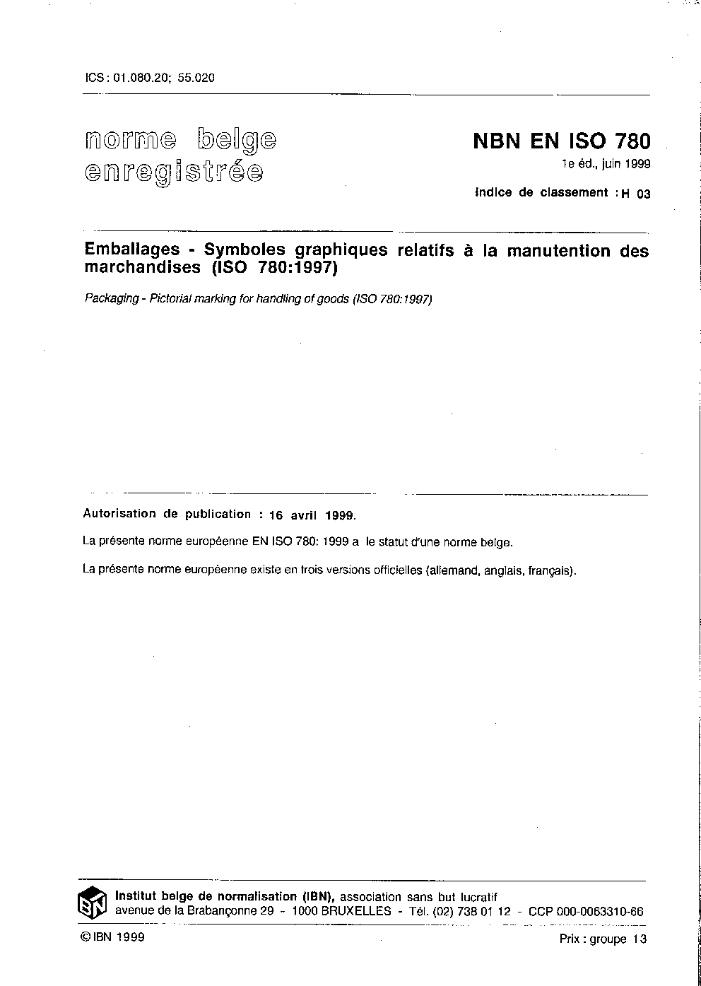 NBN EN ISO 780:2016