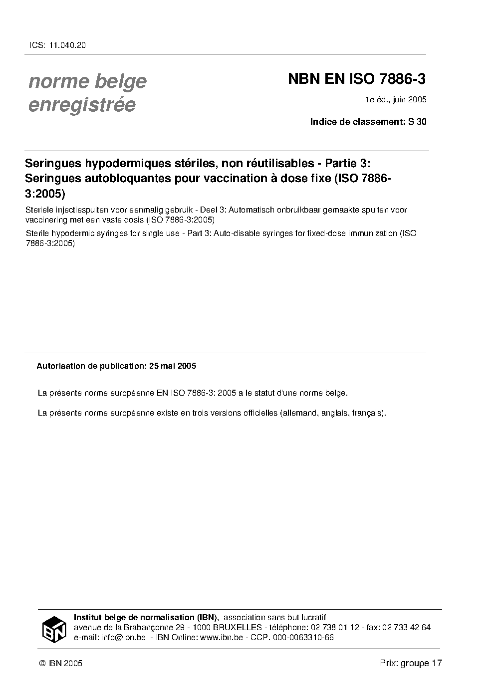 | Publisher | Bureau de Normalisation Belge (NBN) |