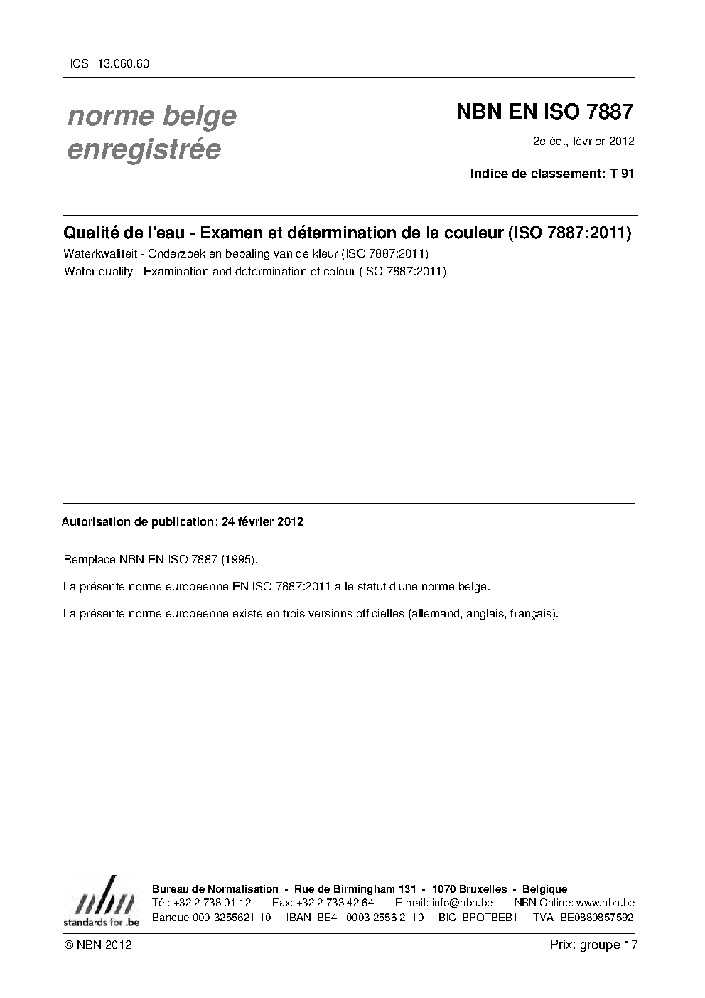 | Publisher | Bureau de Normalisation Belge (NBN) |