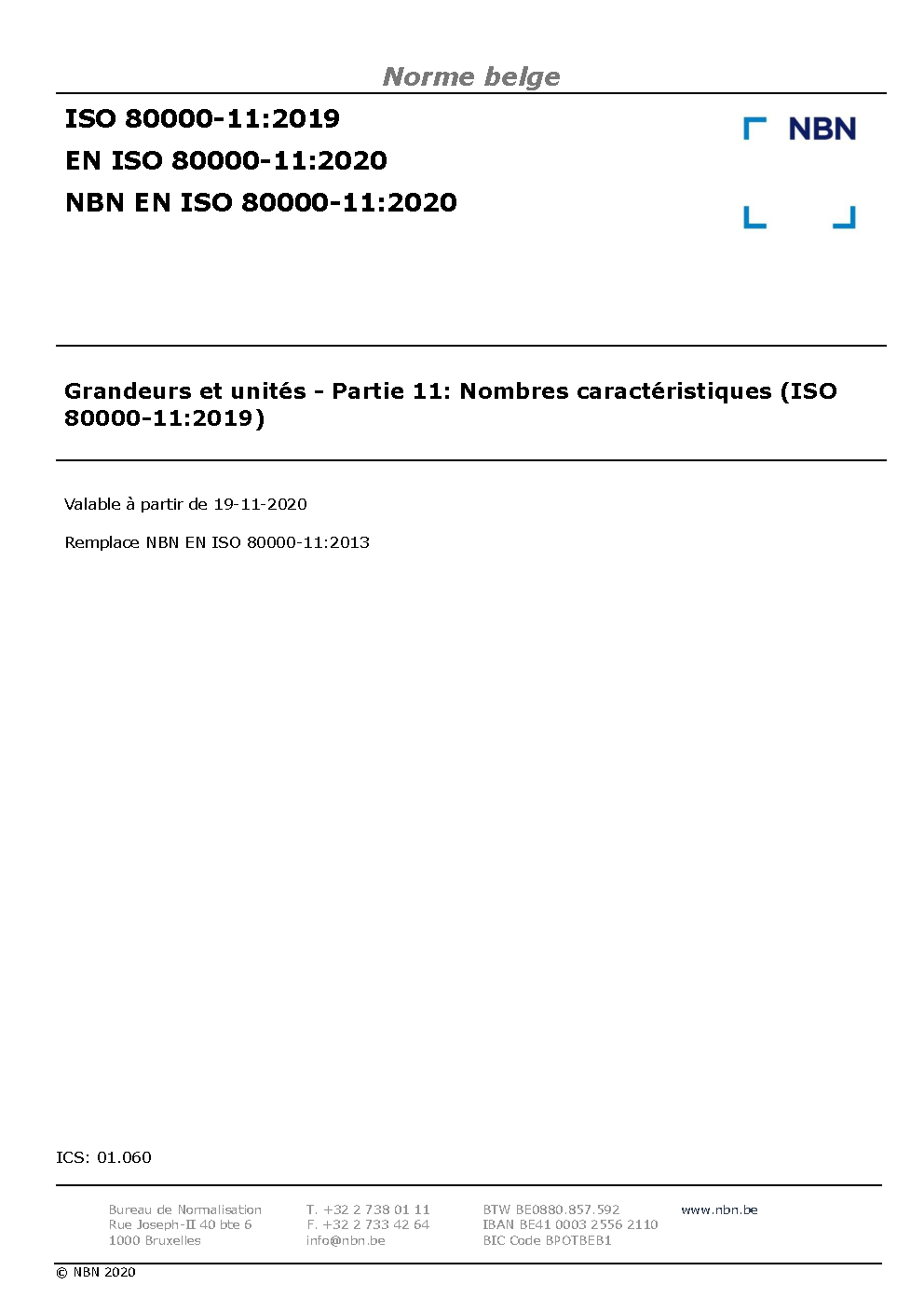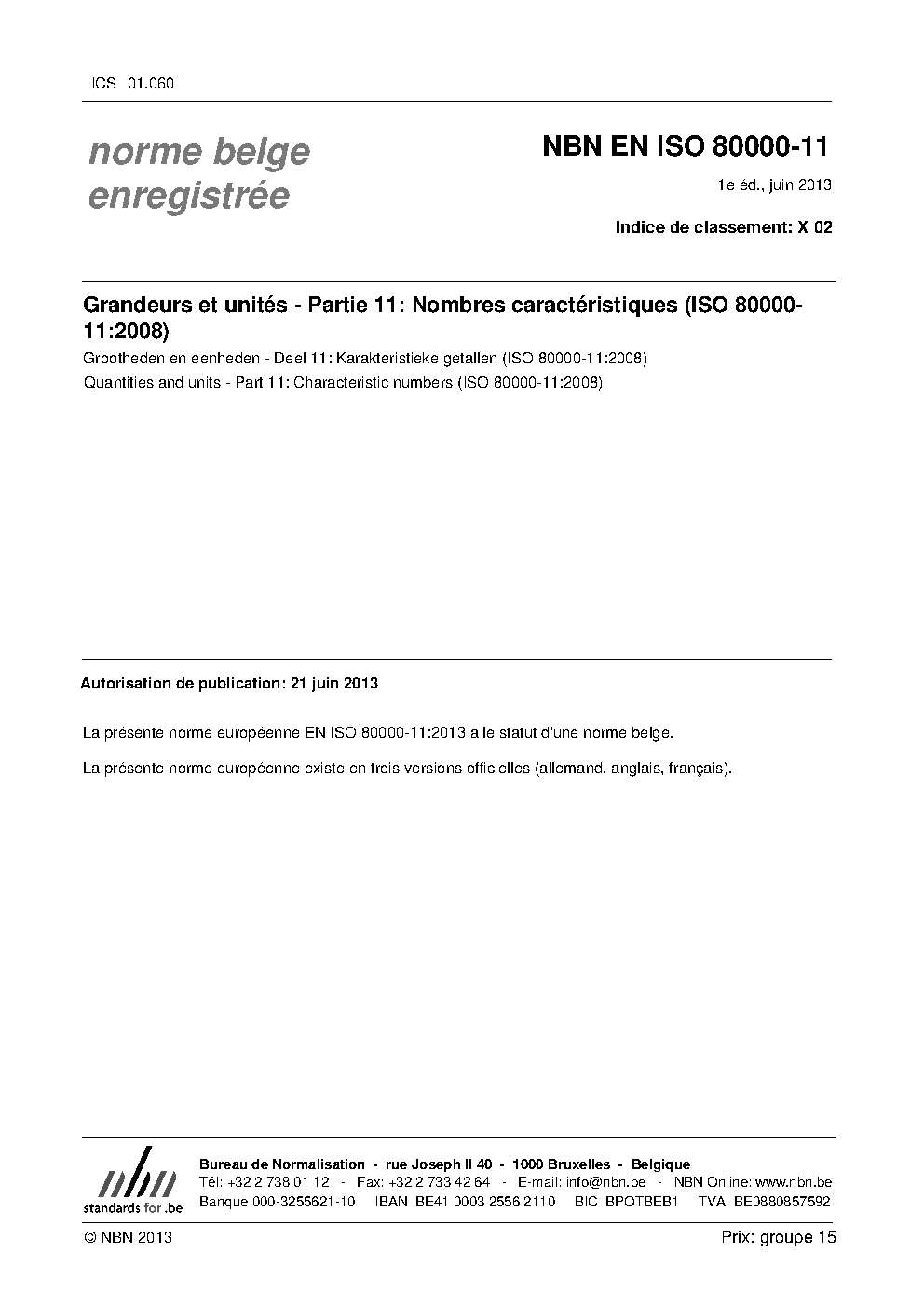 | Publisher | Bureau de Normalisation Belge (NBN) |