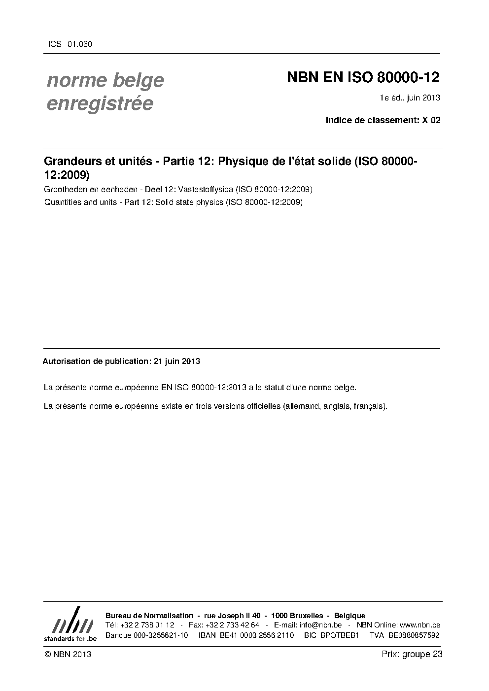 | Publisher | Bureau de Normalisation Belge (NBN) |