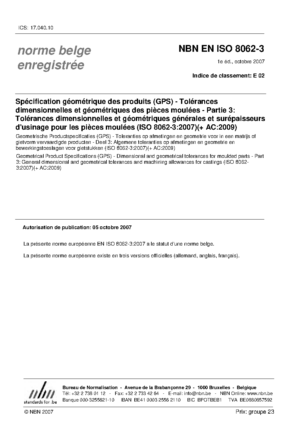 | Publisher | Bureau de Normalisation Belge (NBN) |