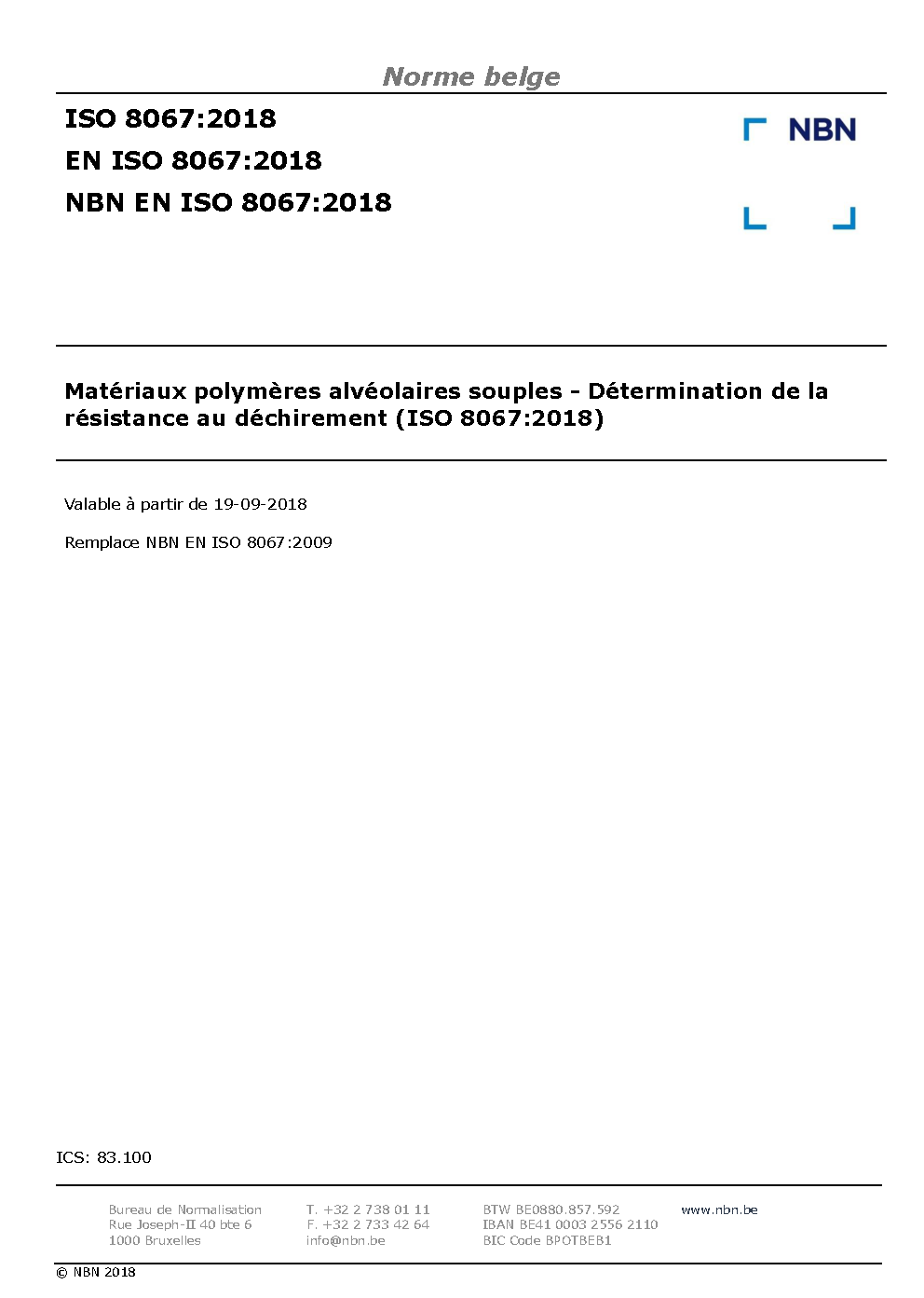 | Publisher | Bureau de Normalisation Belge (NBN) |