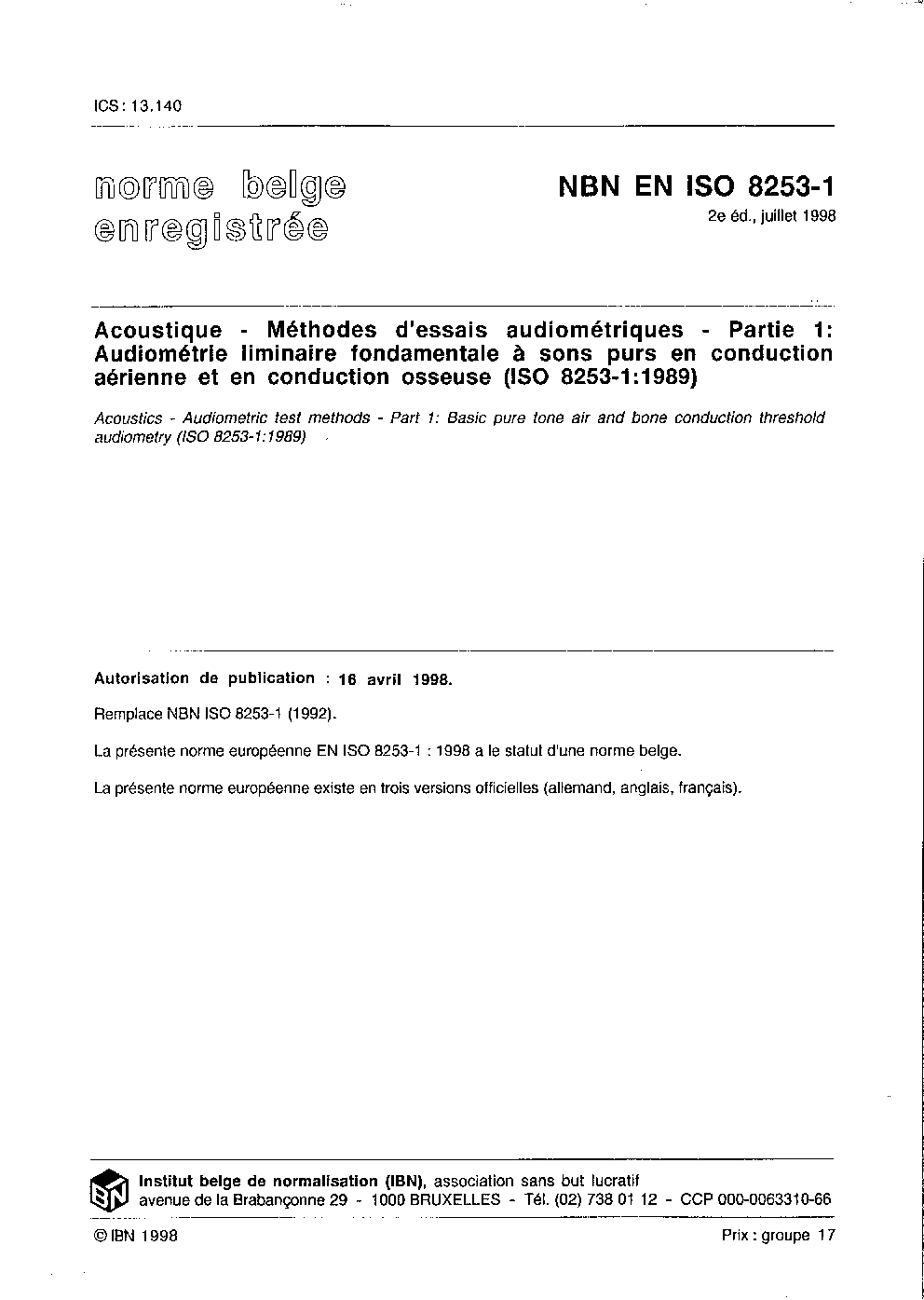 | Publisher | Bureau de Normalisation Belge (NBN) |