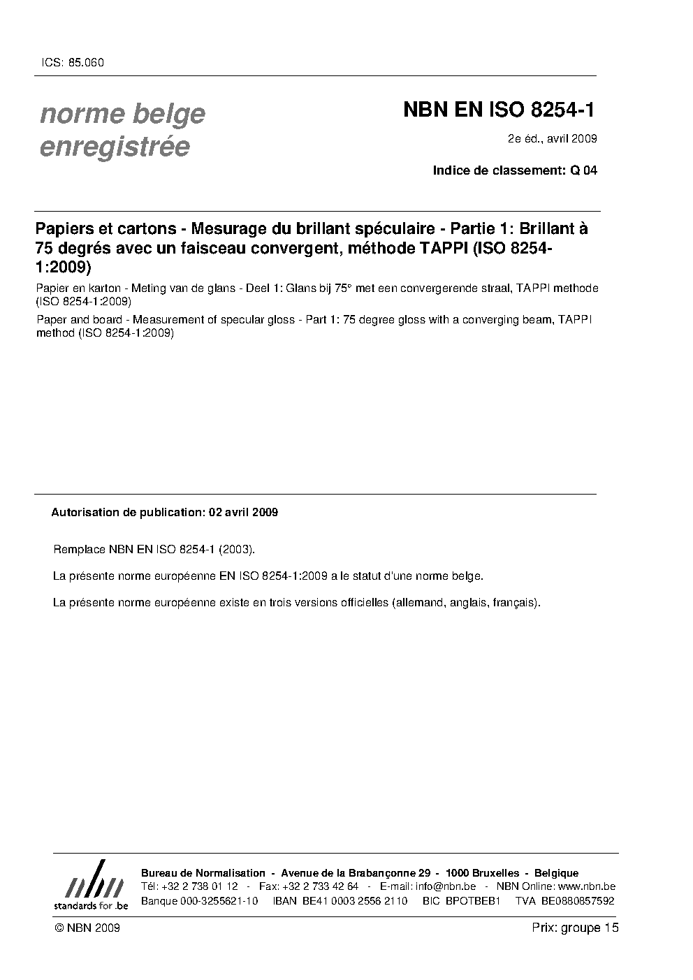| Publisher | Bureau de Normalisation Belge (NBN) |