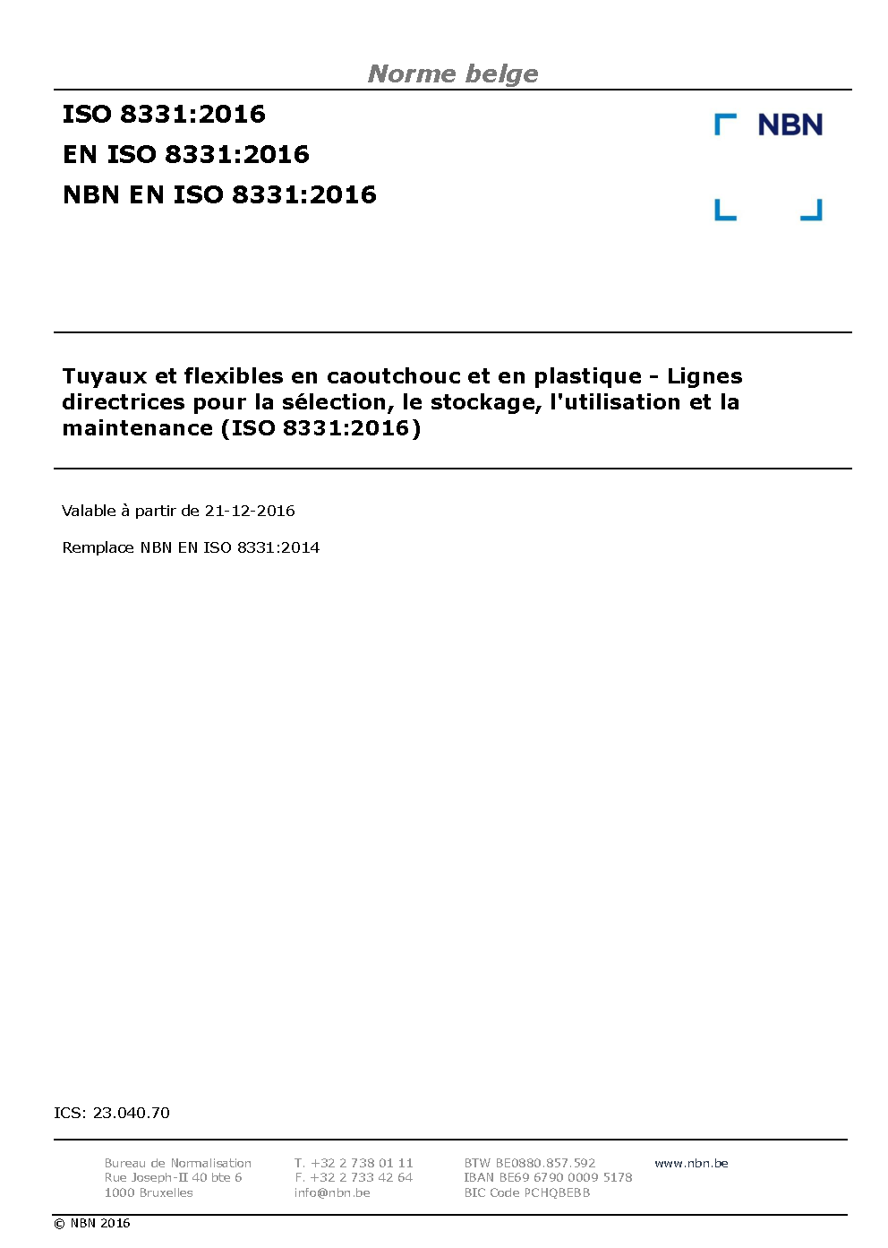 Rubber and plastics hoses and hose assemblies - Guidelines for selection, storage, use and maintenance (ISO 8331:2016)
