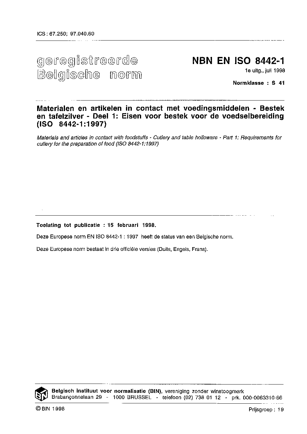 | Publisher | Bureau de Normalisation Belge (NBN) |