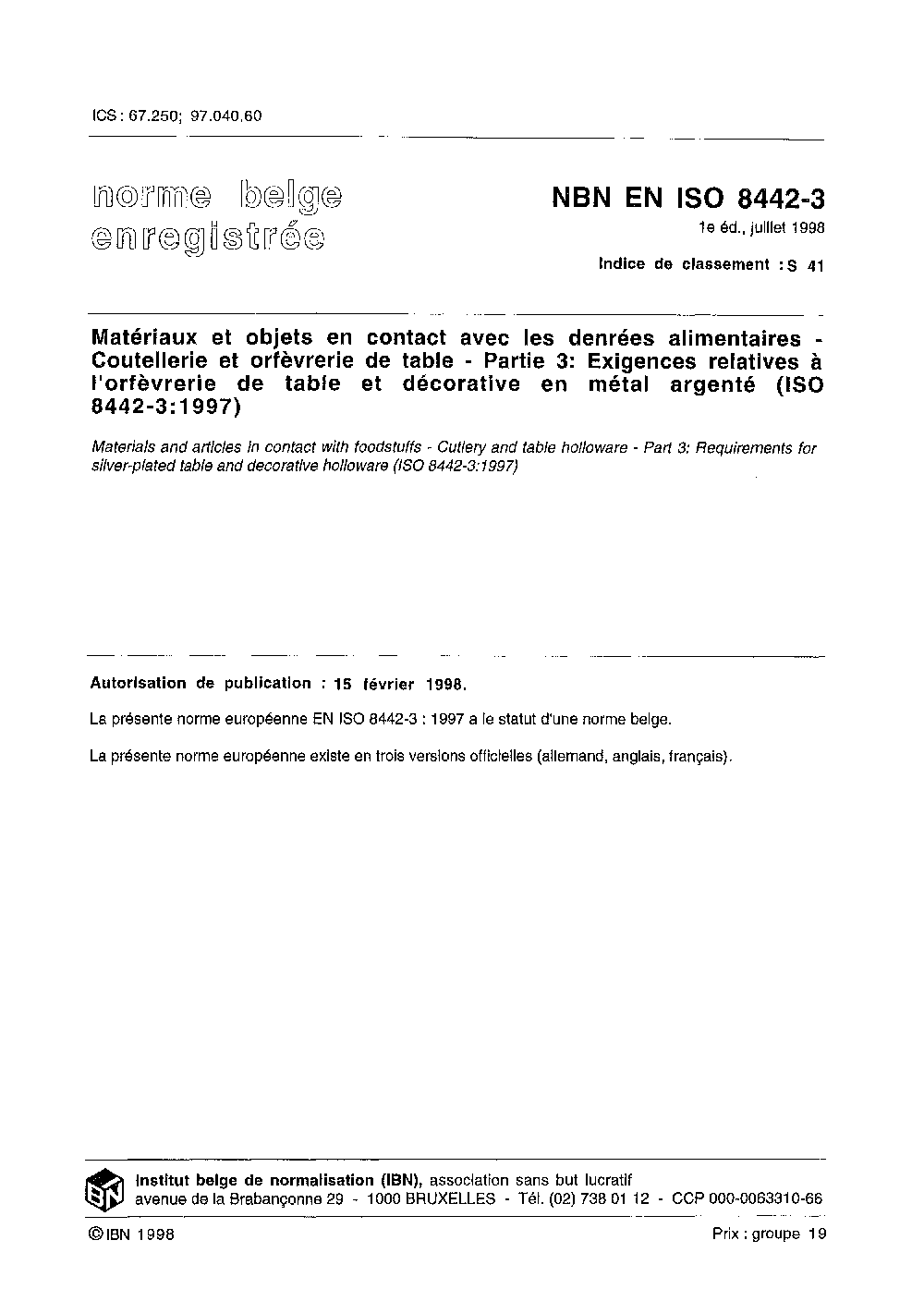 | Publisher | Bureau de Normalisation Belge (NBN) |
