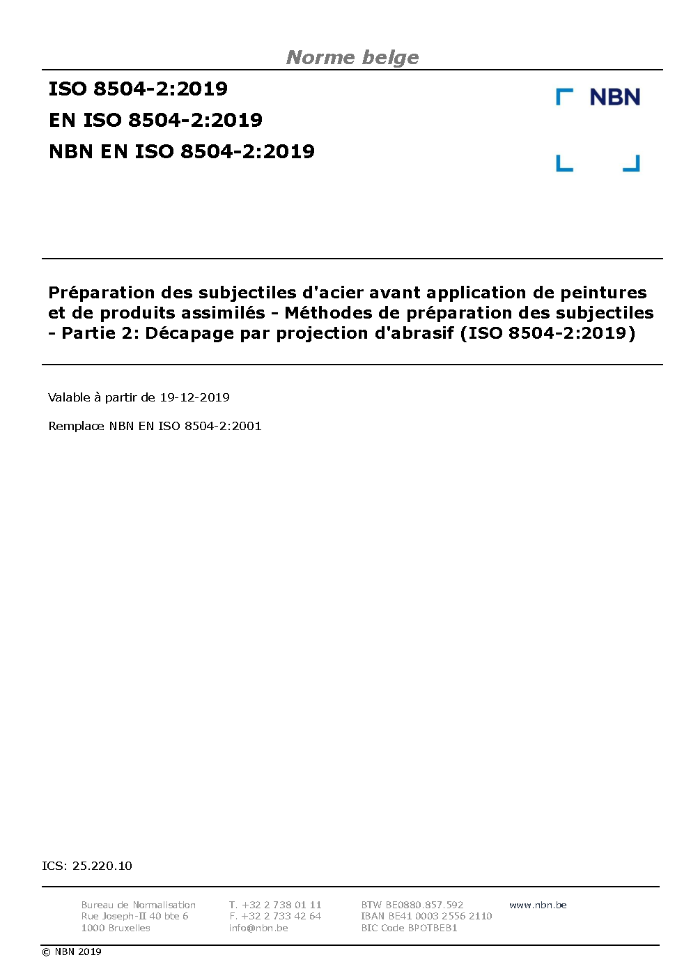 | Publisher | Bureau de Normalisation Belge (NBN) |