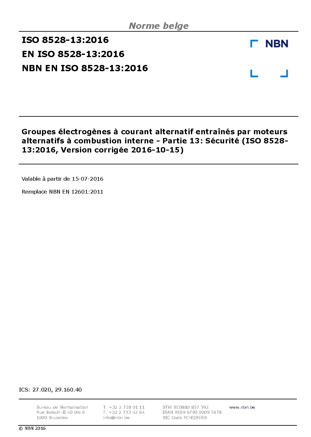 NBN EN ISO 8528-13:2016