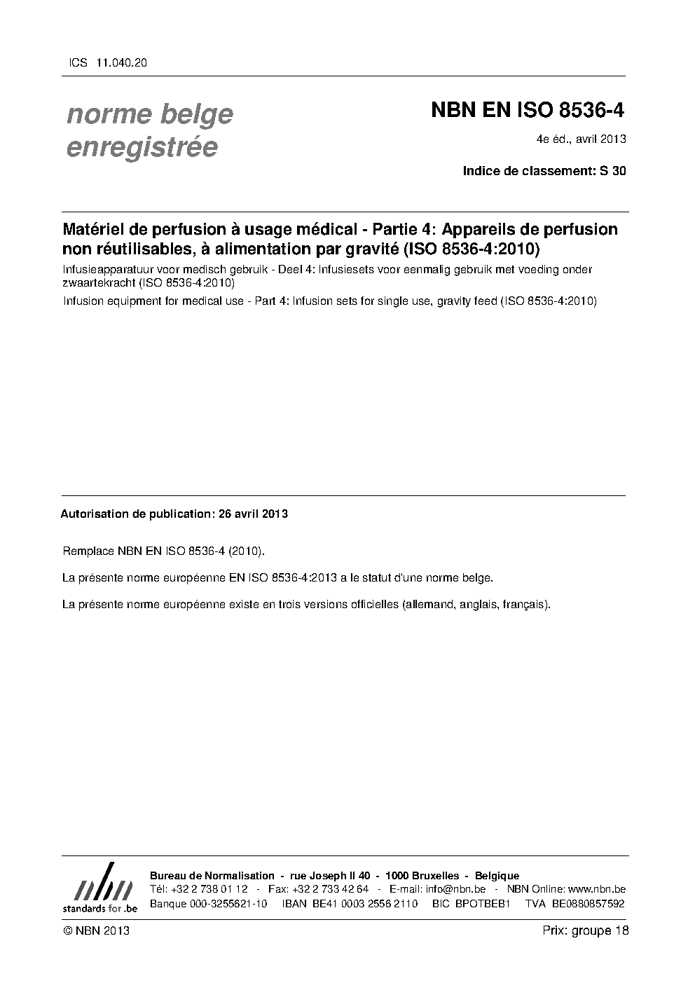 | Publisher | Bureau de Normalisation Belge (NBN) |