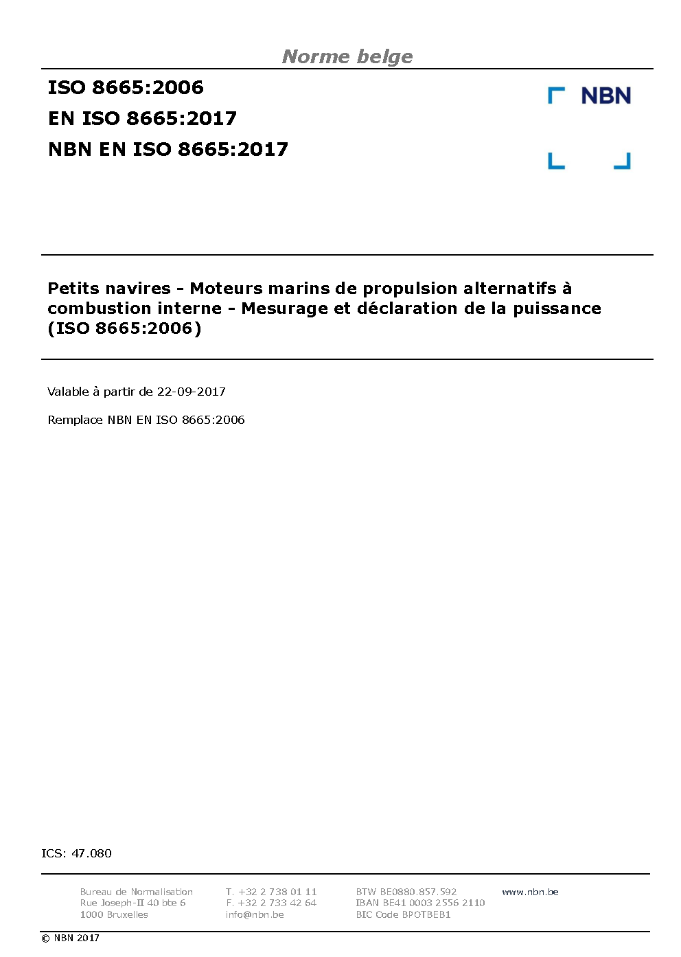 NBN EN ISO 8665:2017