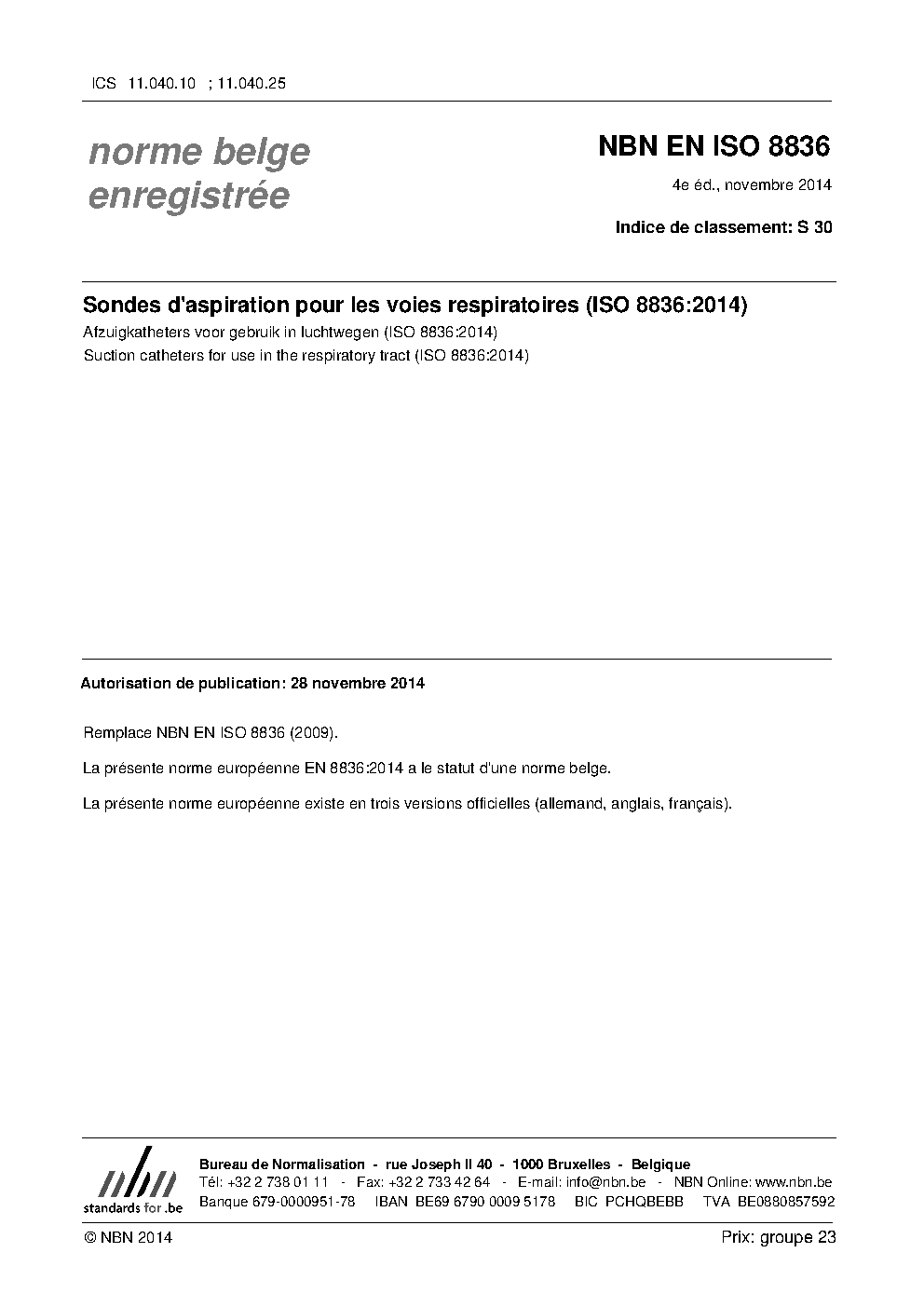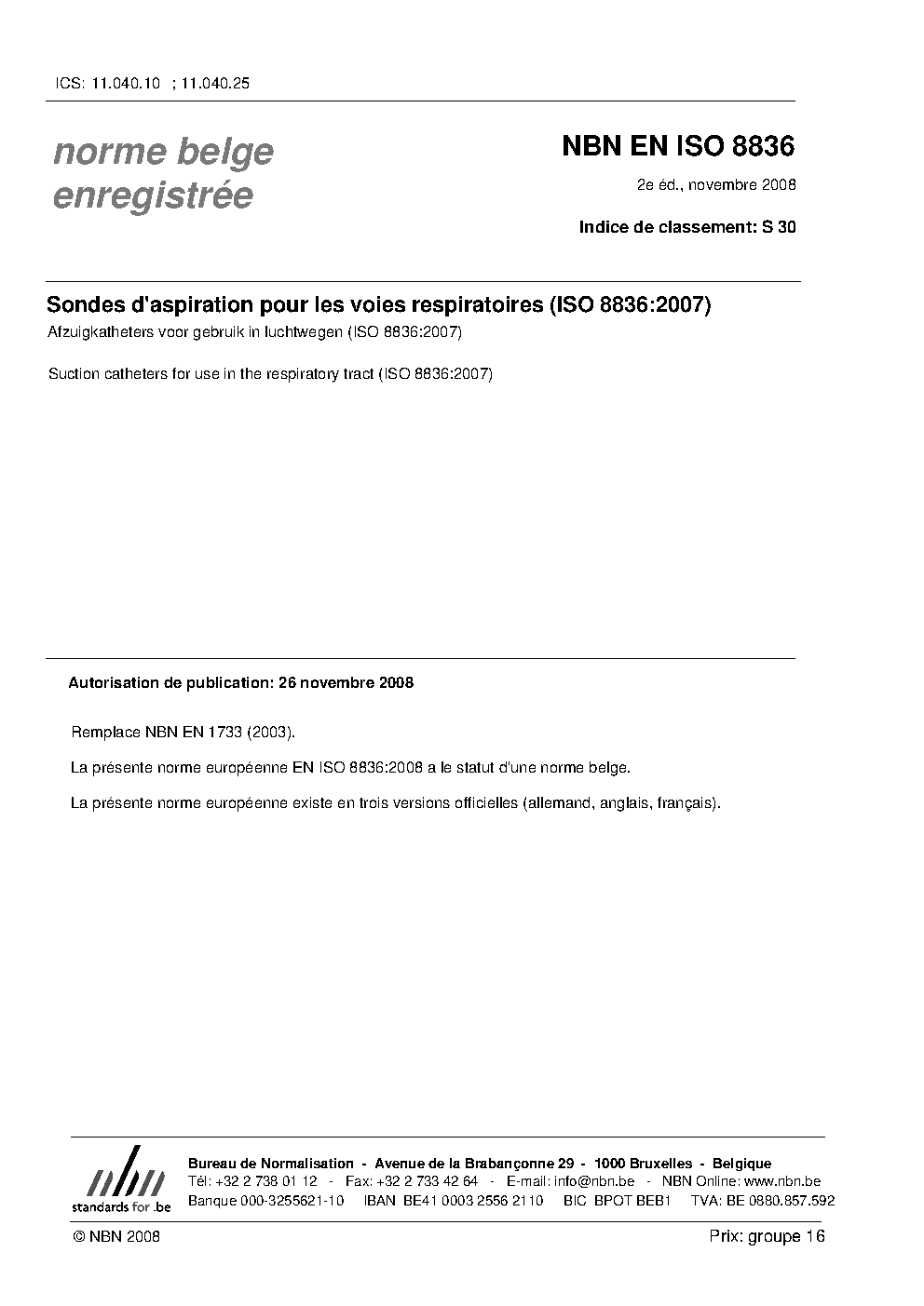 | Publisher | Bureau de Normalisation Belge (NBN) |