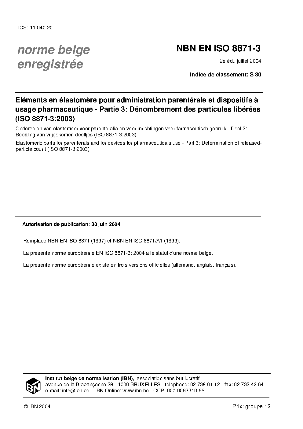 | Publisher | Bureau de Normalisation Belge (NBN) |