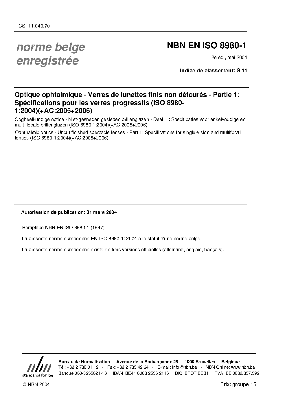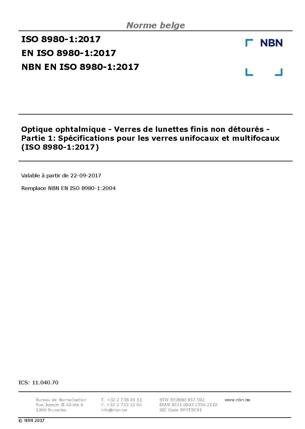 | Publisher | Bureau de Normalisation Belge (NBN) |