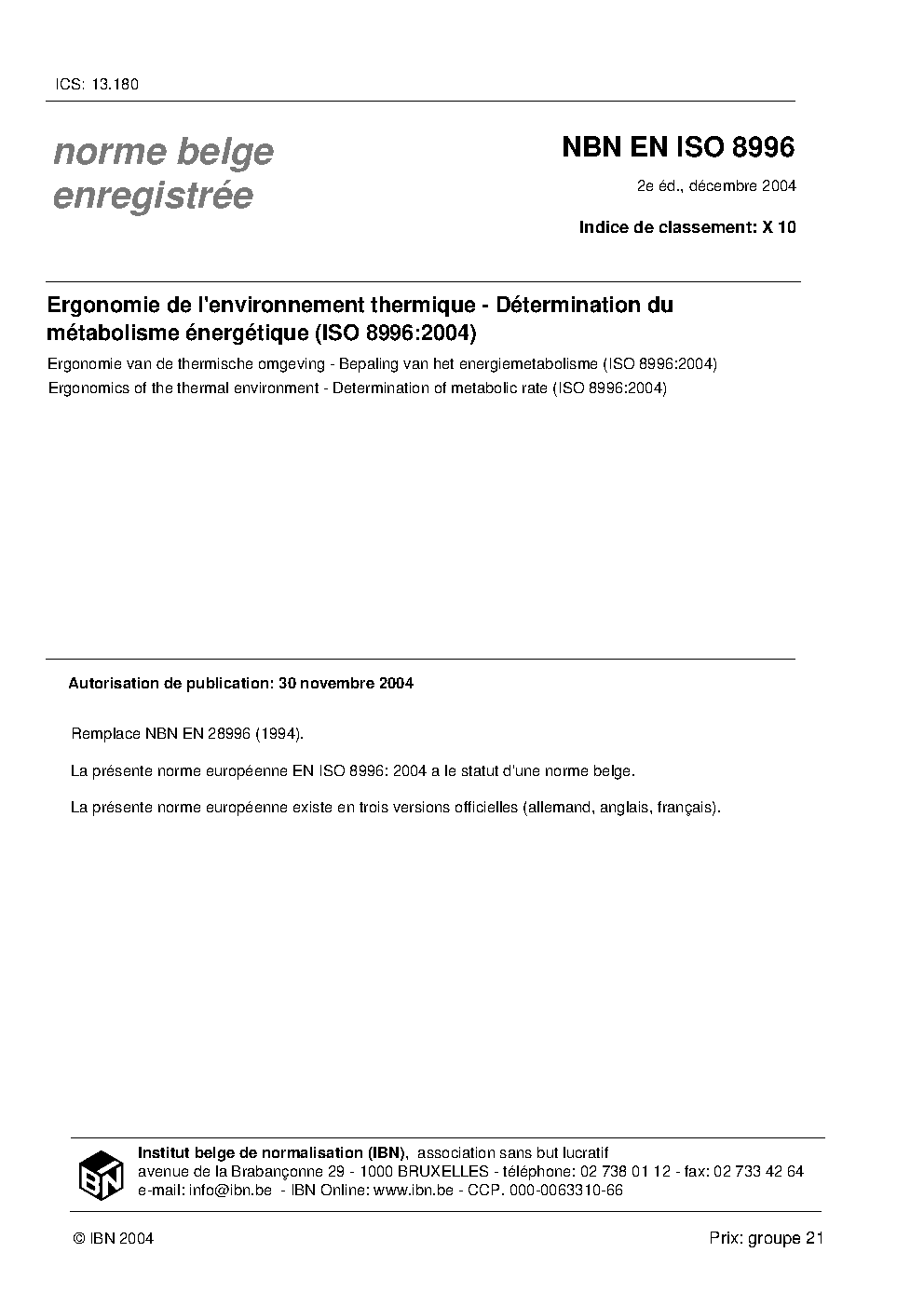 NBN EN ISO 8996:2004