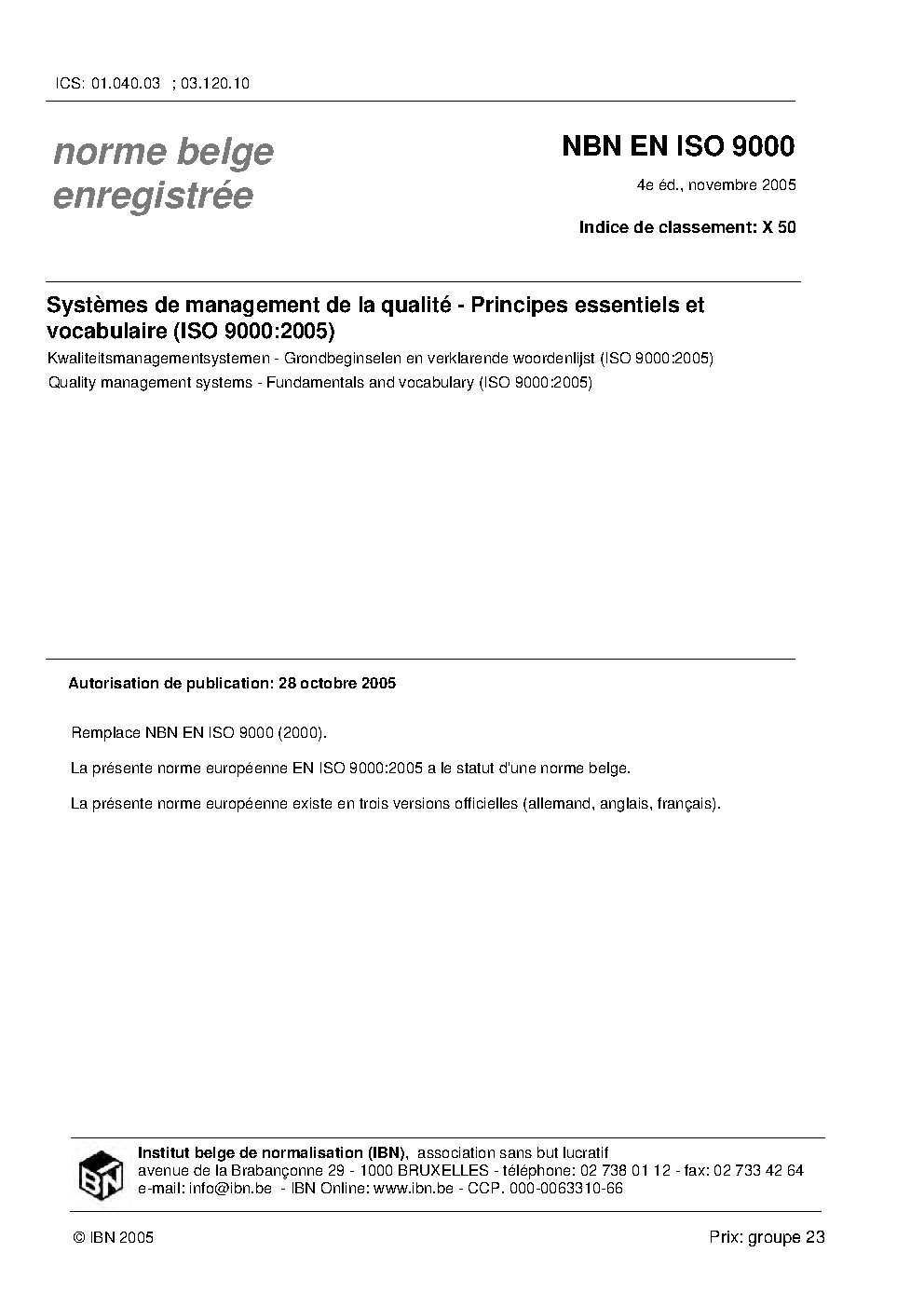 | Publisher | Bureau de Normalisation Belge (NBN) |