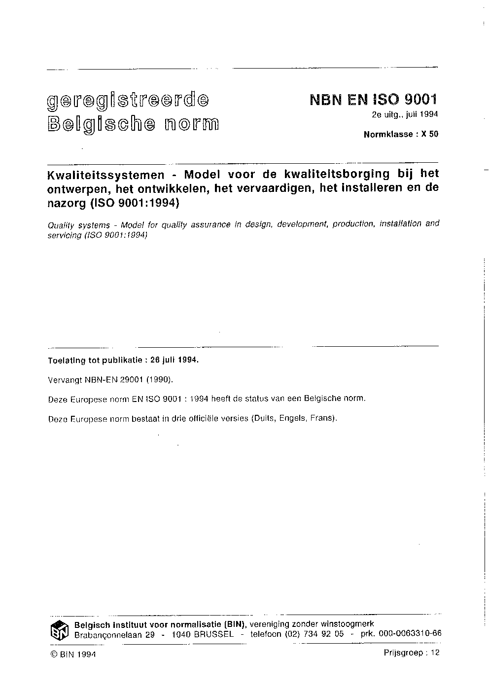 | Publisher | Bureau de Normalisation Belge (NBN) |