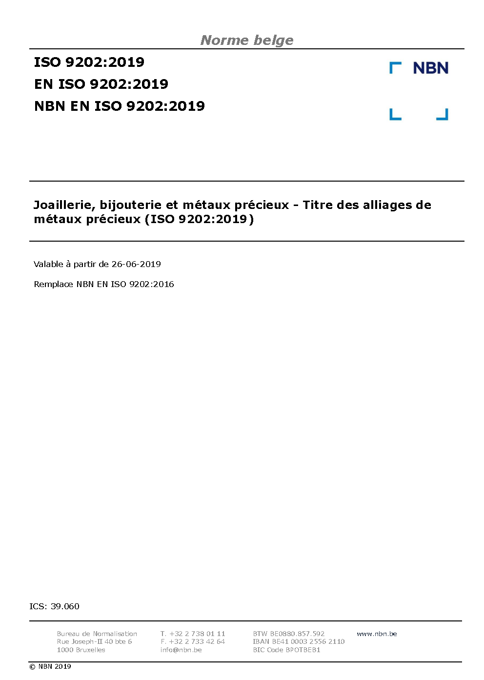 Jewellery and precious metals - Fineness of precious metal alloys (ISO 9202:2019)