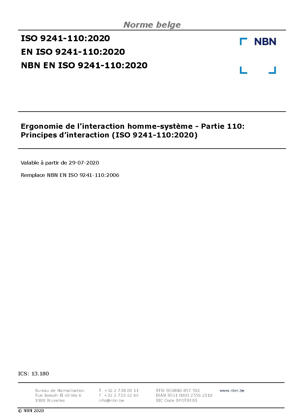 Ergonomics of human-system interaction - Part 110: Interaction principles (ISO 9241-110:2020)