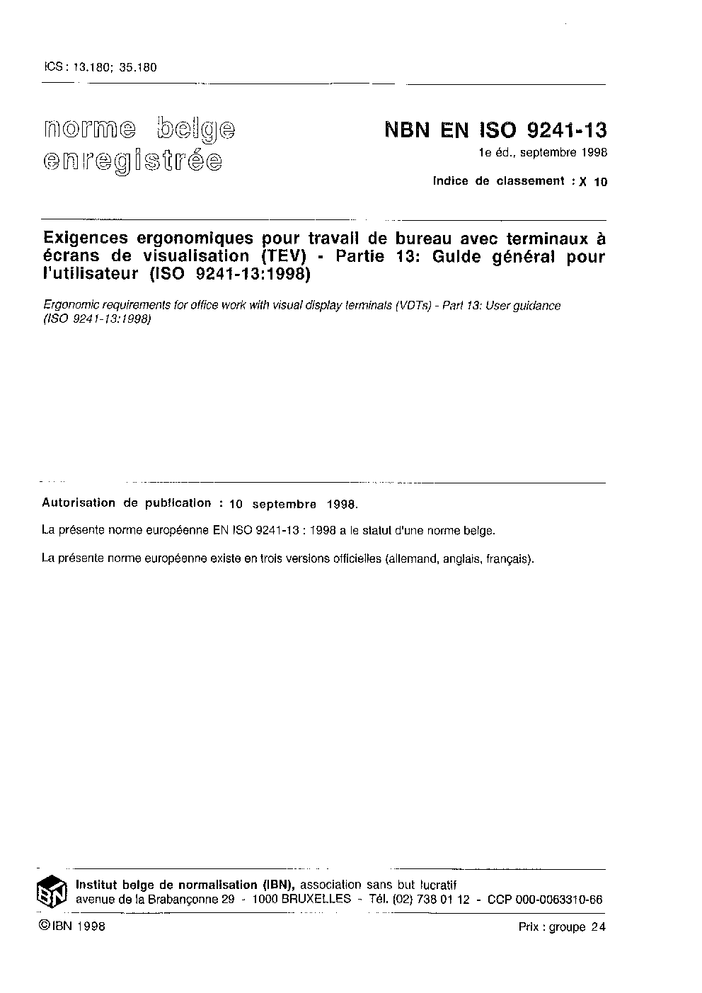 | Publisher | Bureau de Normalisation Belge (NBN) |