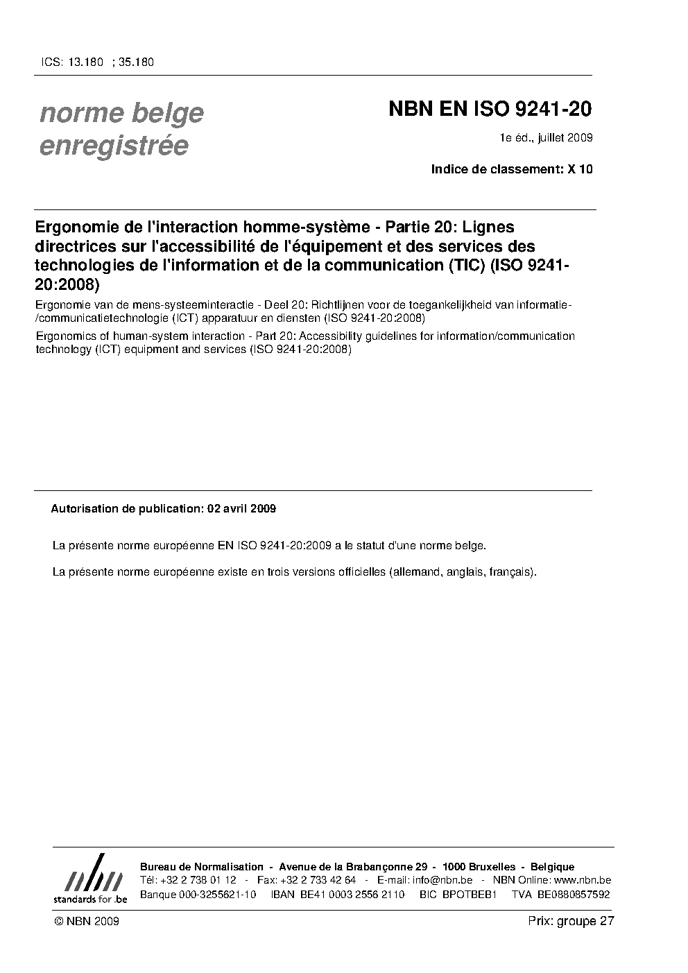 | Publisher | Bureau de Normalisation Belge (NBN) |