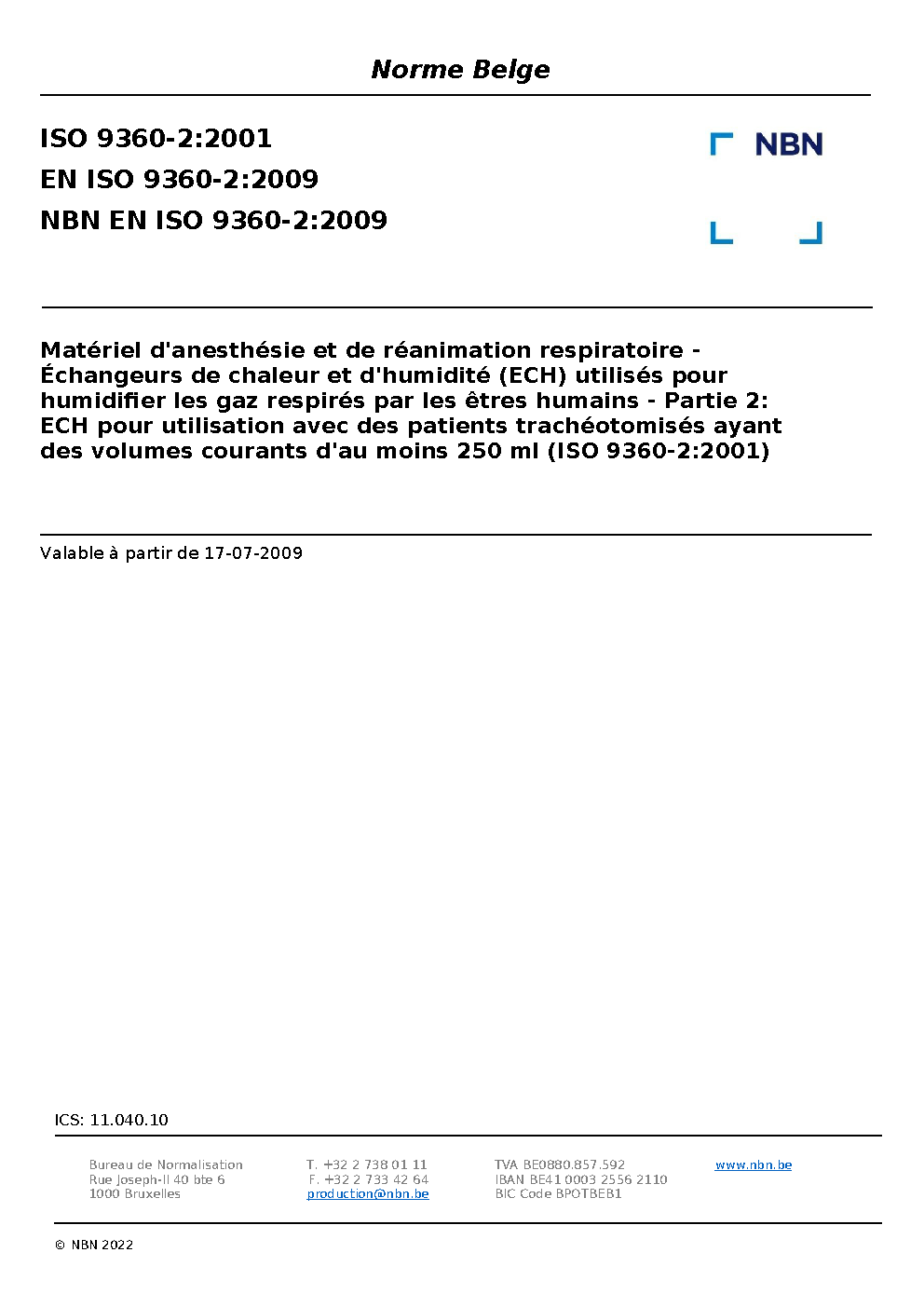 NBN EN ISO 9360-2:2009