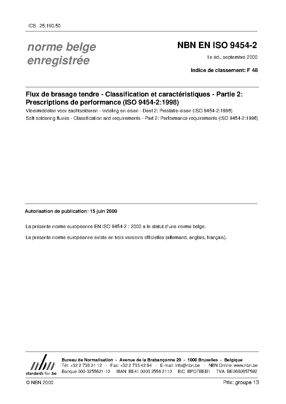 | Publisher | Bureau de Normalisation Belge (NBN) |