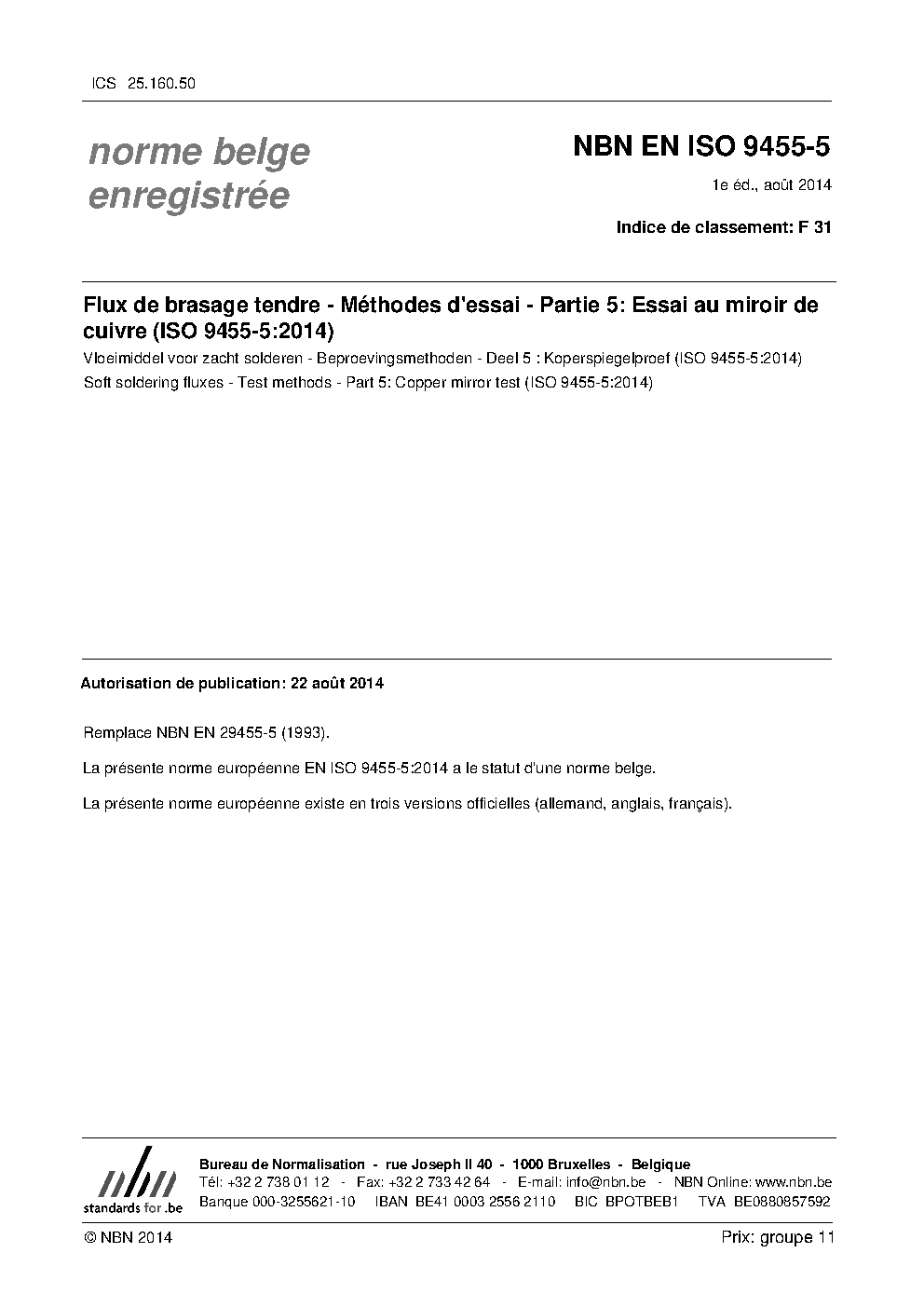 | Publisher | Bureau de Normalisation Belge (NBN) |