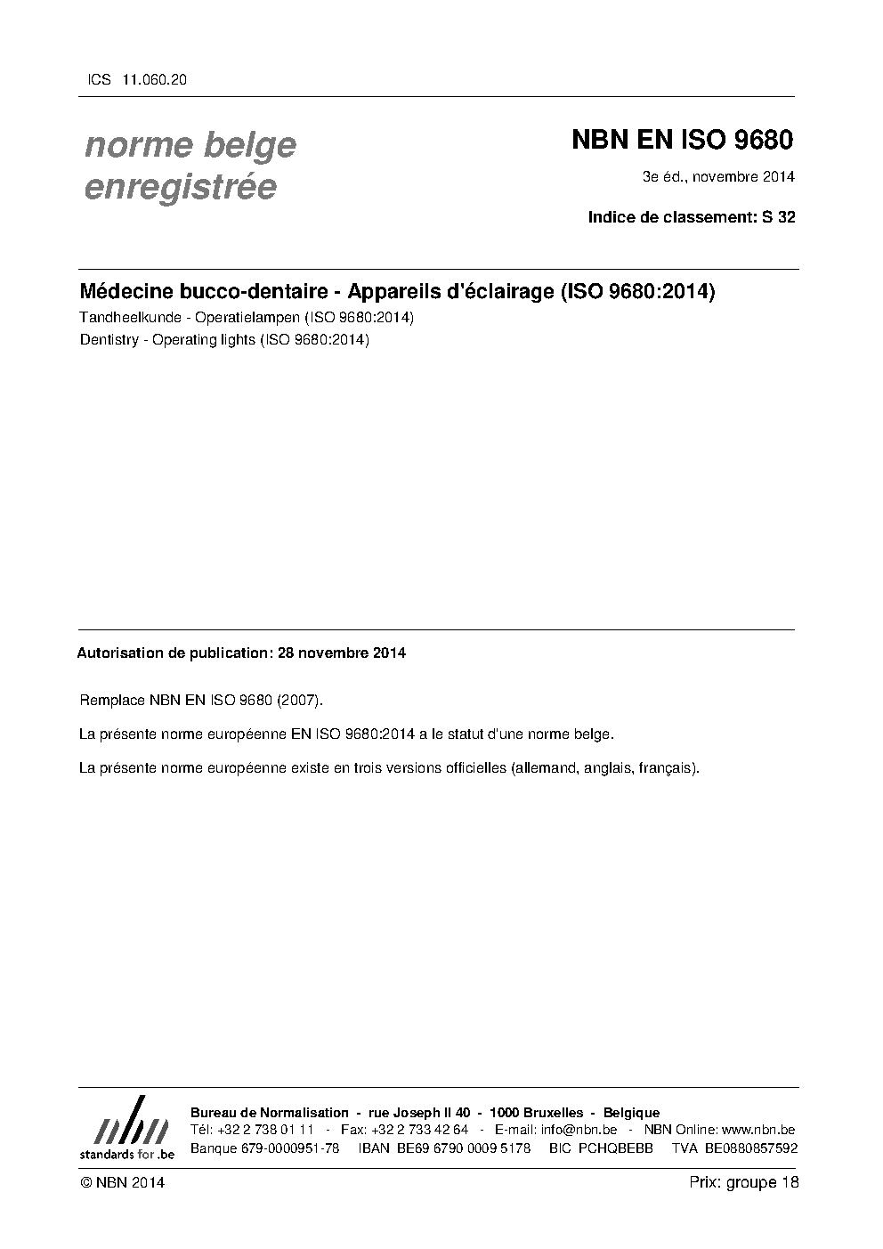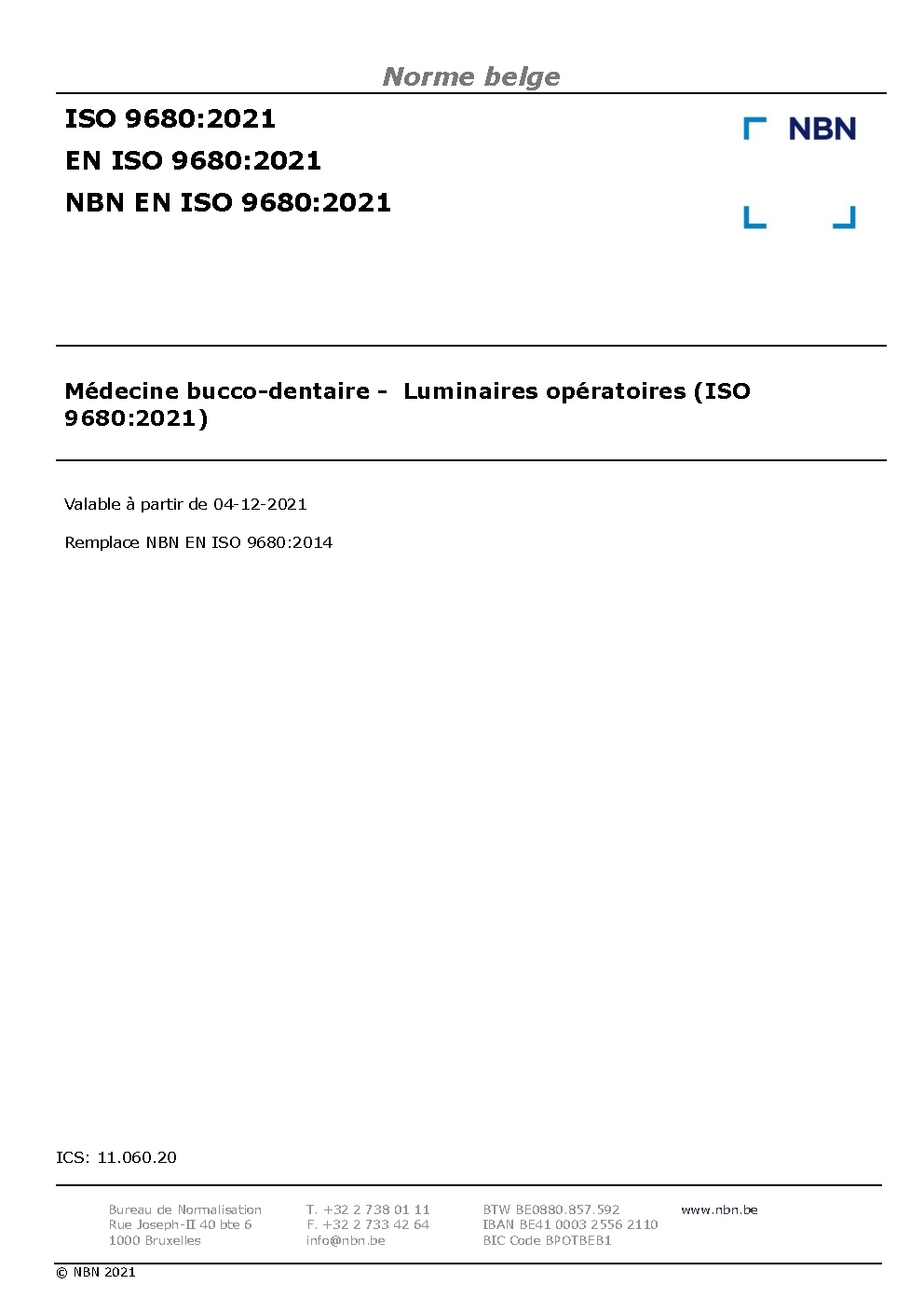 This document specifies requirements and test methods for operating lights used in the dental office and intended for illuminating the oral cavity of patients. It also contains specifications on the instructions for use, marking and packaging.