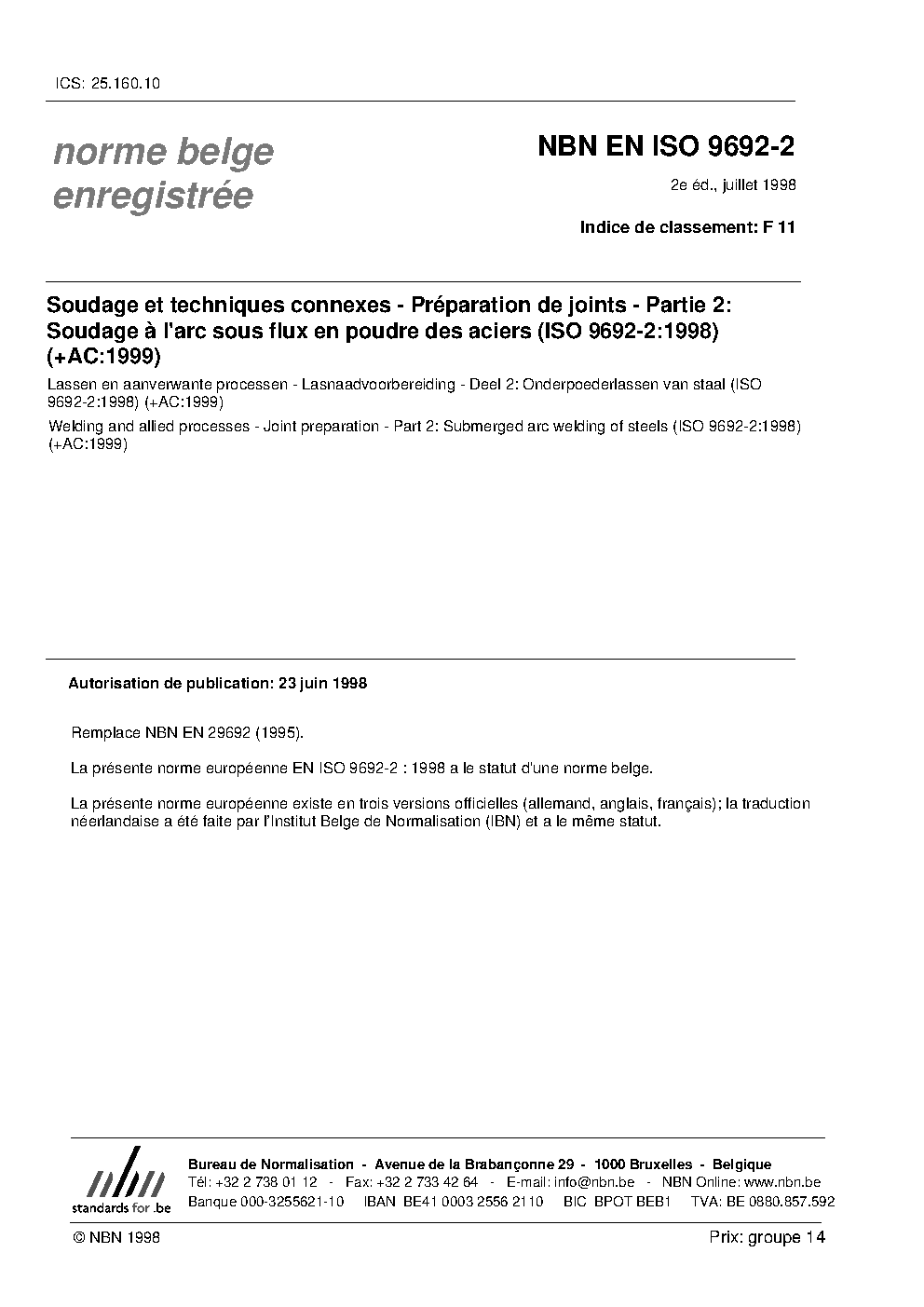 | Publisher | Bureau de Normalisation Belge (NBN) |
