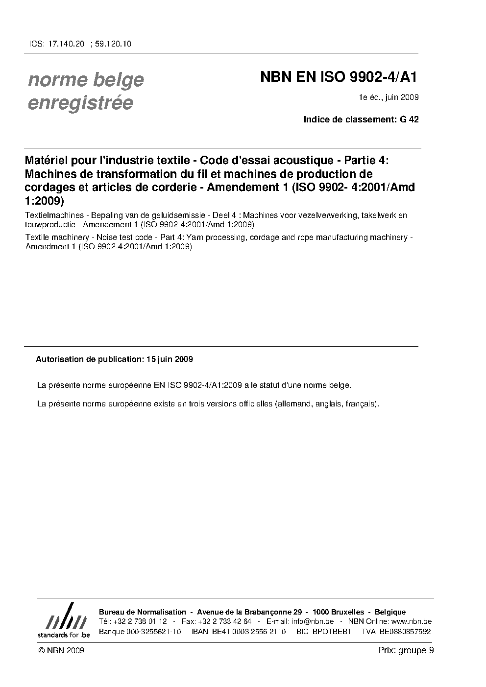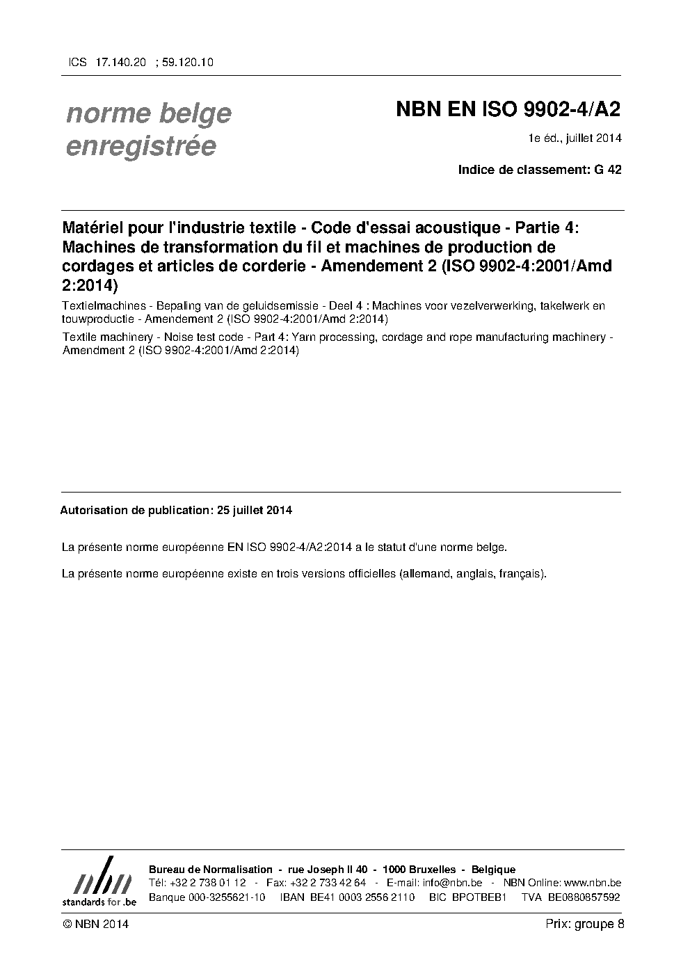 | Publisher | Bureau de Normalisation Belge (NBN) |