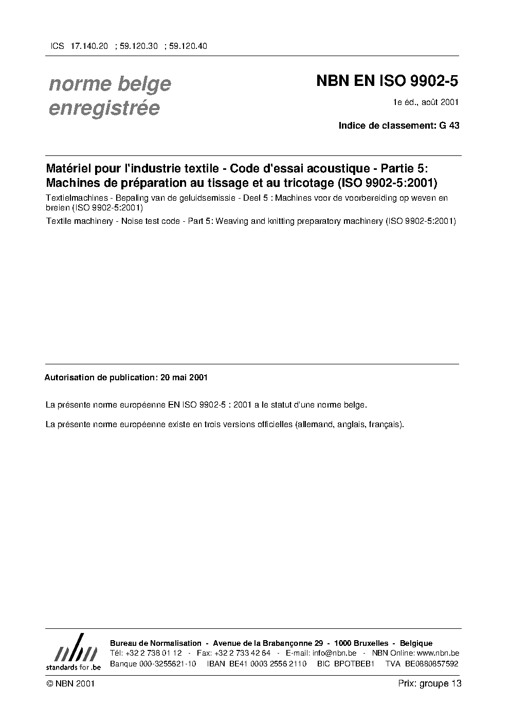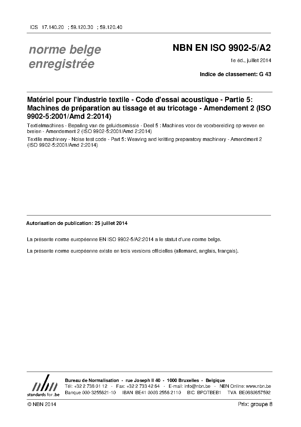 | Publisher | Bureau de Normalisation Belge (NBN) |