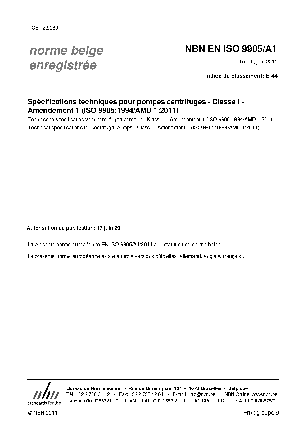 | Publisher | Bureau de Normalisation Belge (NBN) |