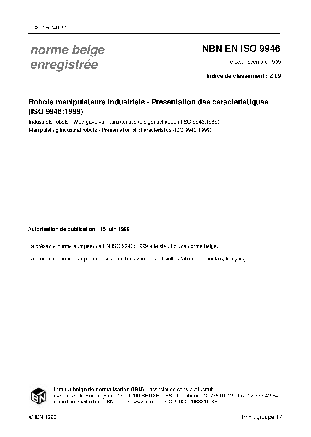 | Publisher | Bureau de Normalisation Belge (NBN) |