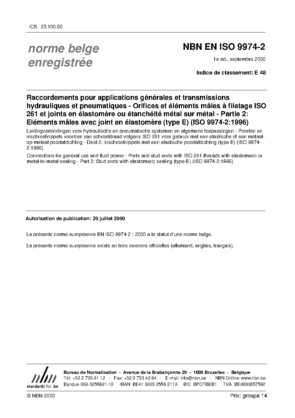 | Publisher | Bureau de Normalisation Belge (NBN) |