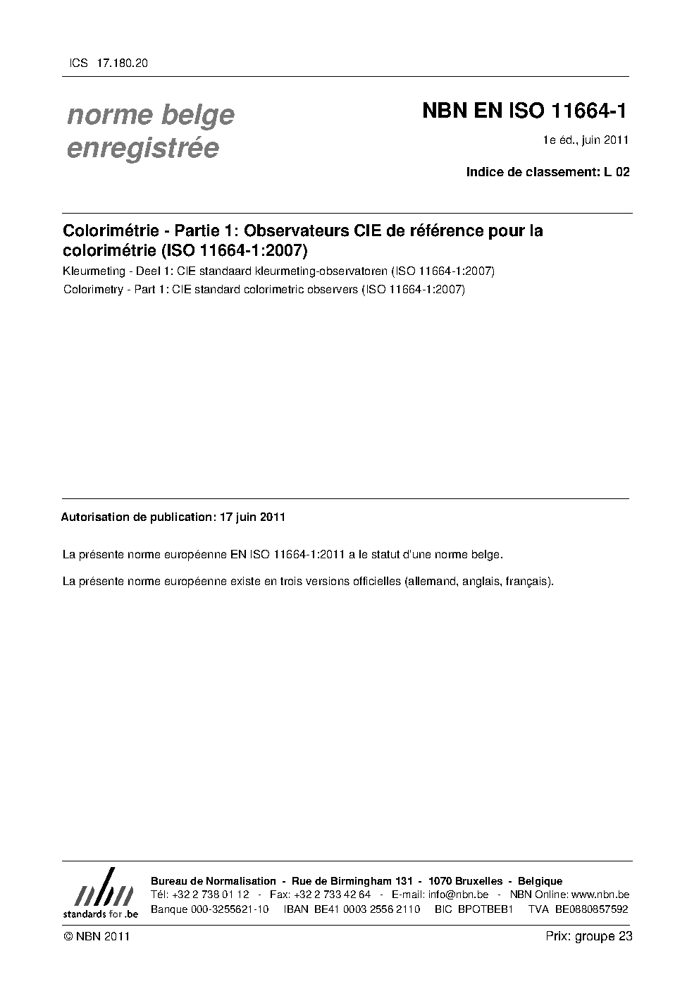Colorimetry - Part 1: CIE standard colorimetric observers (ISO/CIE 11664-1:2019)