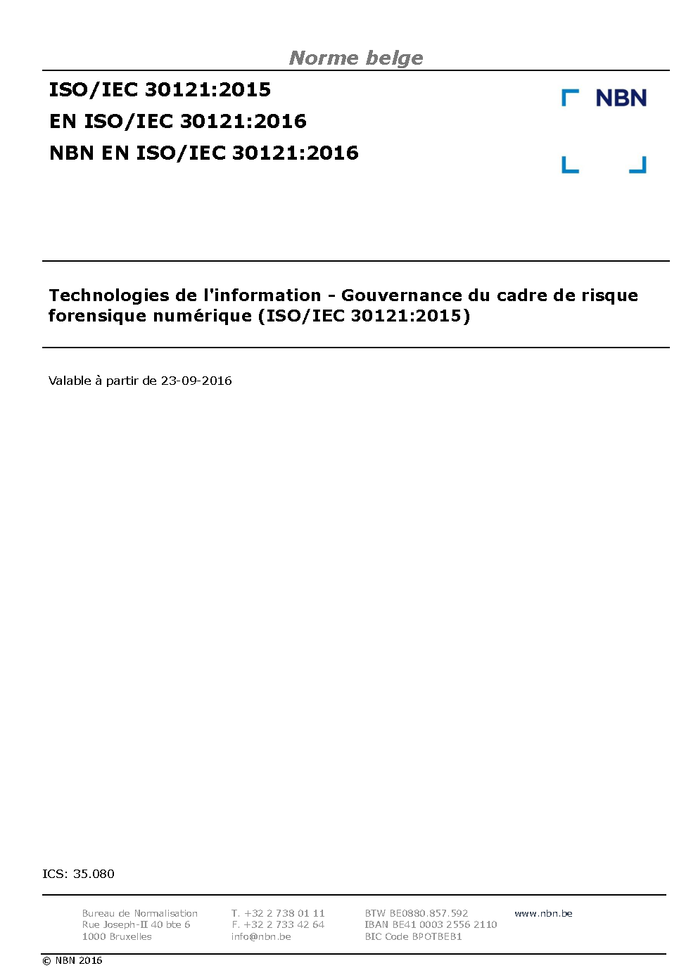 | Publisher | Bureau de Normalisation Belge (NBN) |