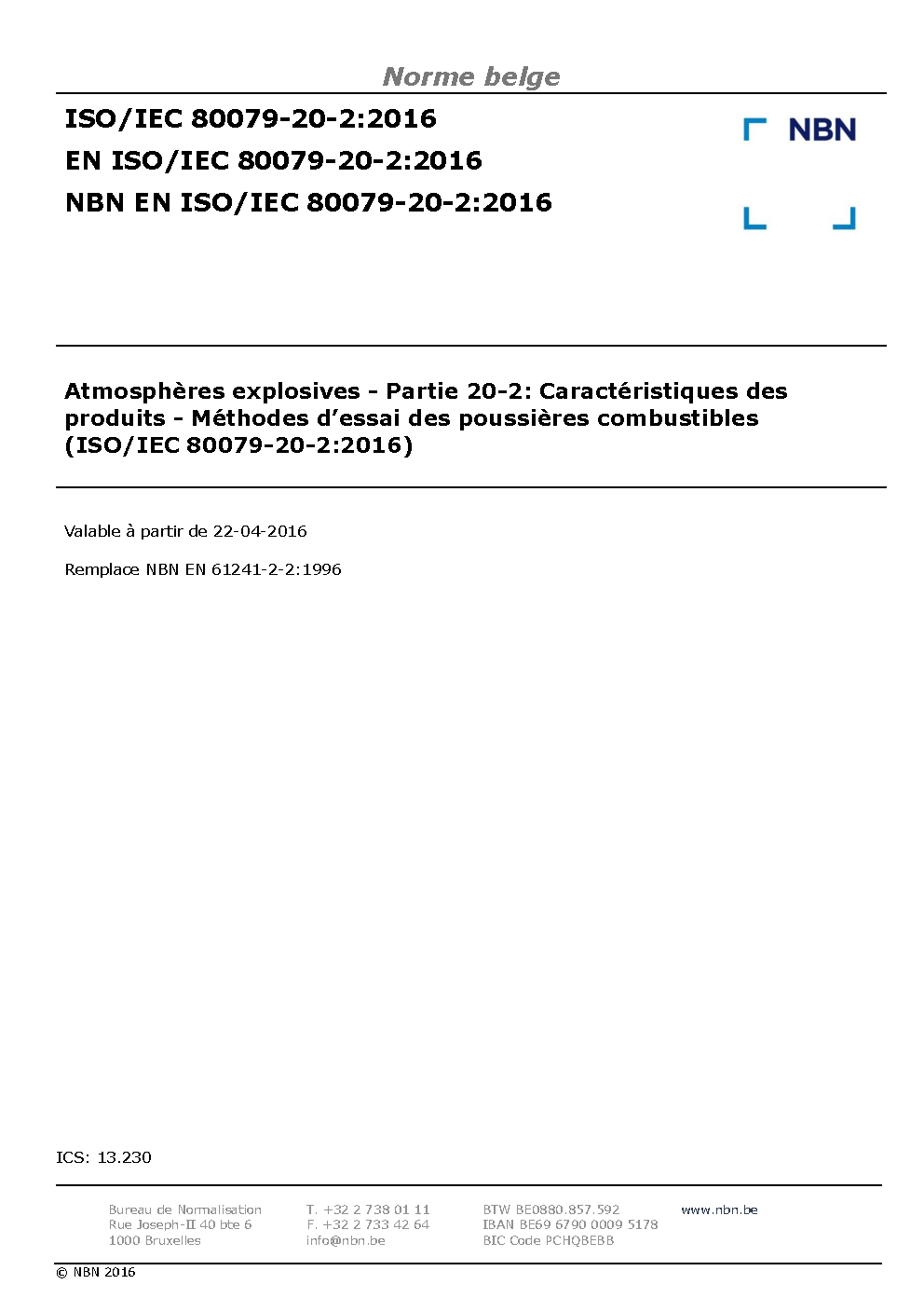 | Publisher | Bureau de Normalisation Belge (NBN) |