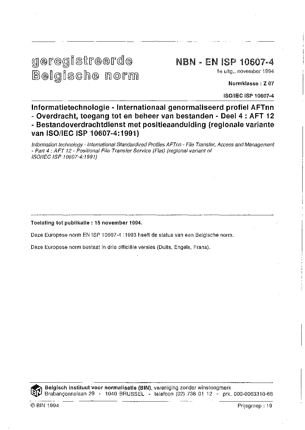 NBN EN ISP 10607-4:1994
