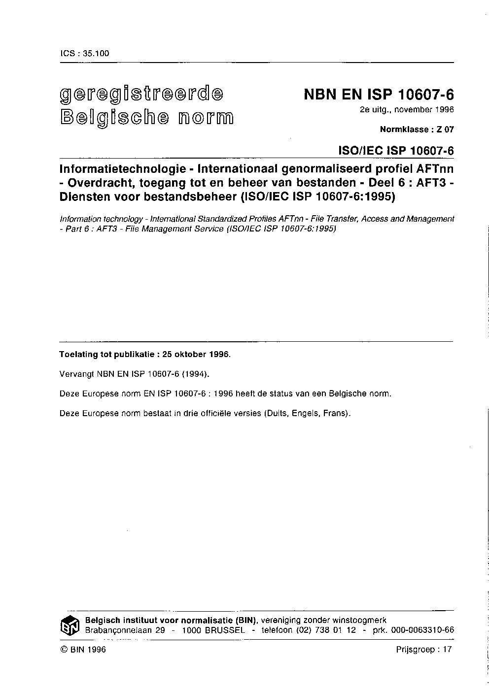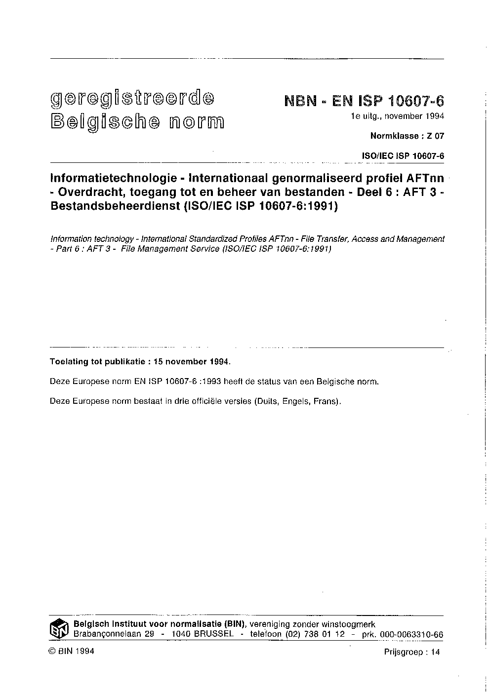 | Publisher | Bureau de Normalisation Belge (NBN) |