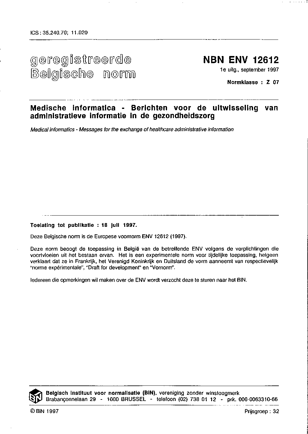 | Publisher | Bureau de Normalisation Belge (NBN) |