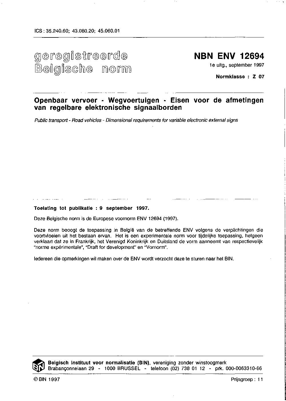 | Publisher | Bureau de Normalisation Belge (NBN) |