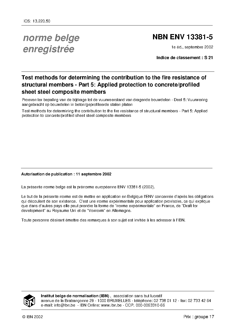 NBN ENV 13381-5:2002