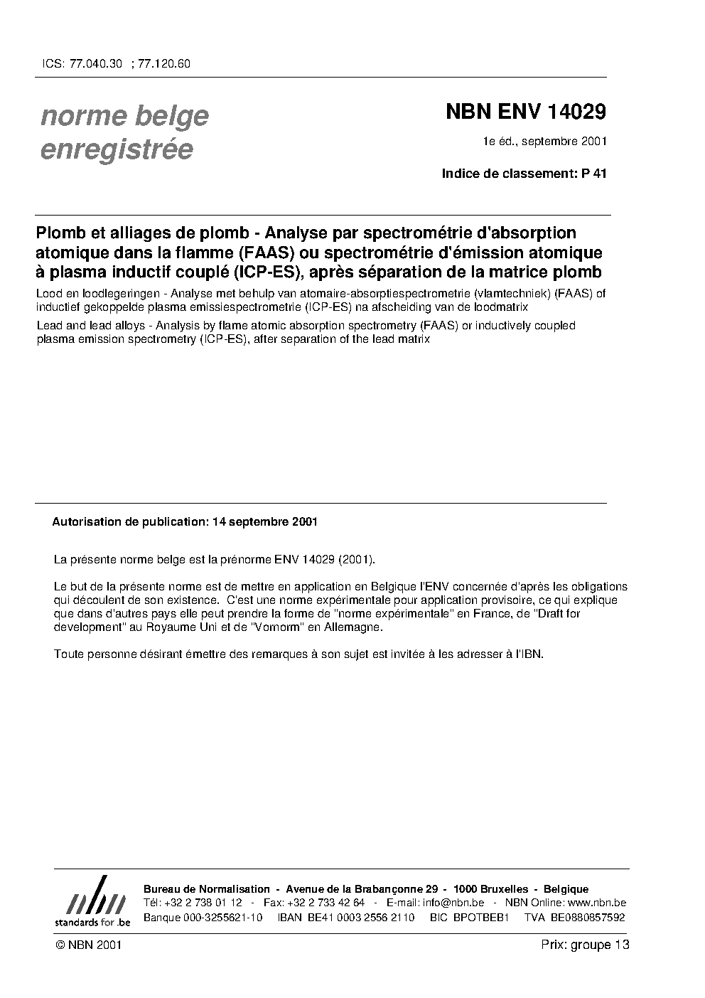 | Publisher | Bureau de Normalisation Belge (NBN) |