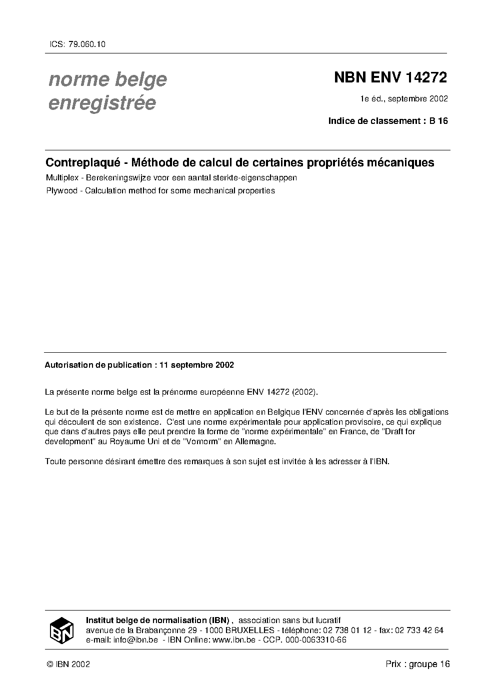 | Publisher | Bureau de Normalisation Belge (NBN) |