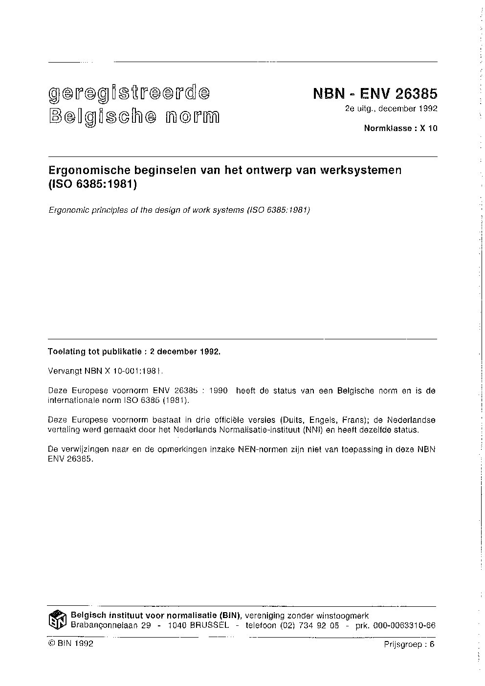| Publisher | Bureau de Normalisation Belge (NBN) |
