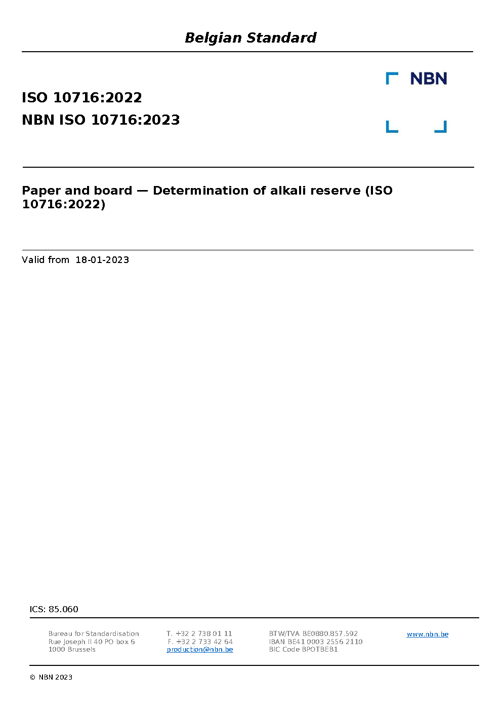 | Publisher | Bureau de Normalisation Belge (NBN) |